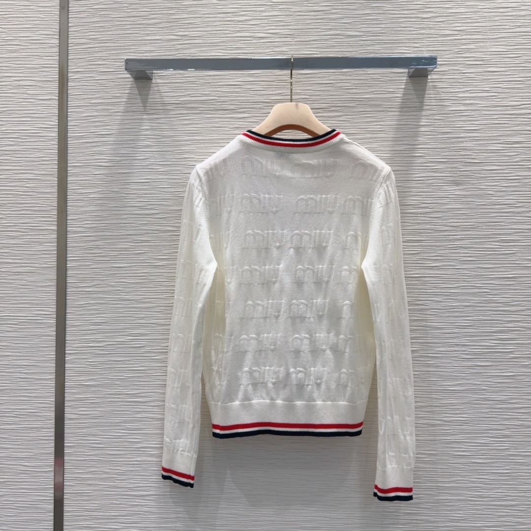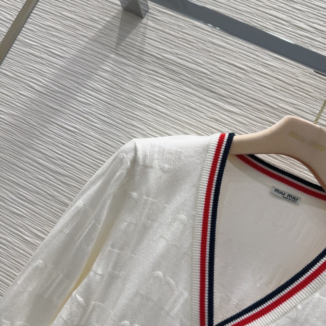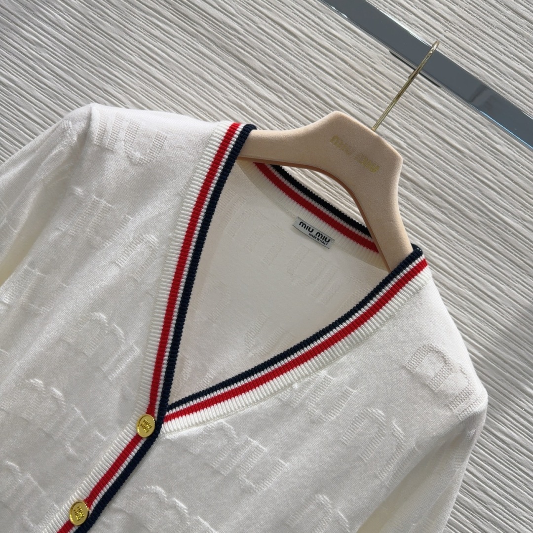 This Miu Miu wool cardigan is the perfect blend of classic style and modern luxury. Made from 100% virgin wool, its soft and delicate texture will make you feel comfortable and elegant.