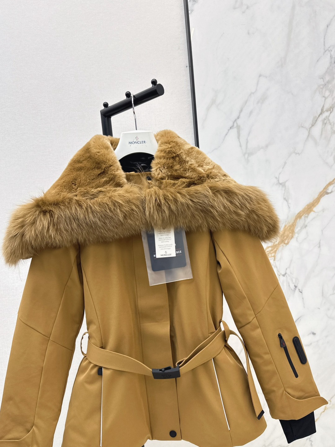 Tags: Designer Ski Jacket, Fur Collar Puffer, Luxury Outerwear, Moncler Celac, Short Down Jacket, Waisted Winter Coat