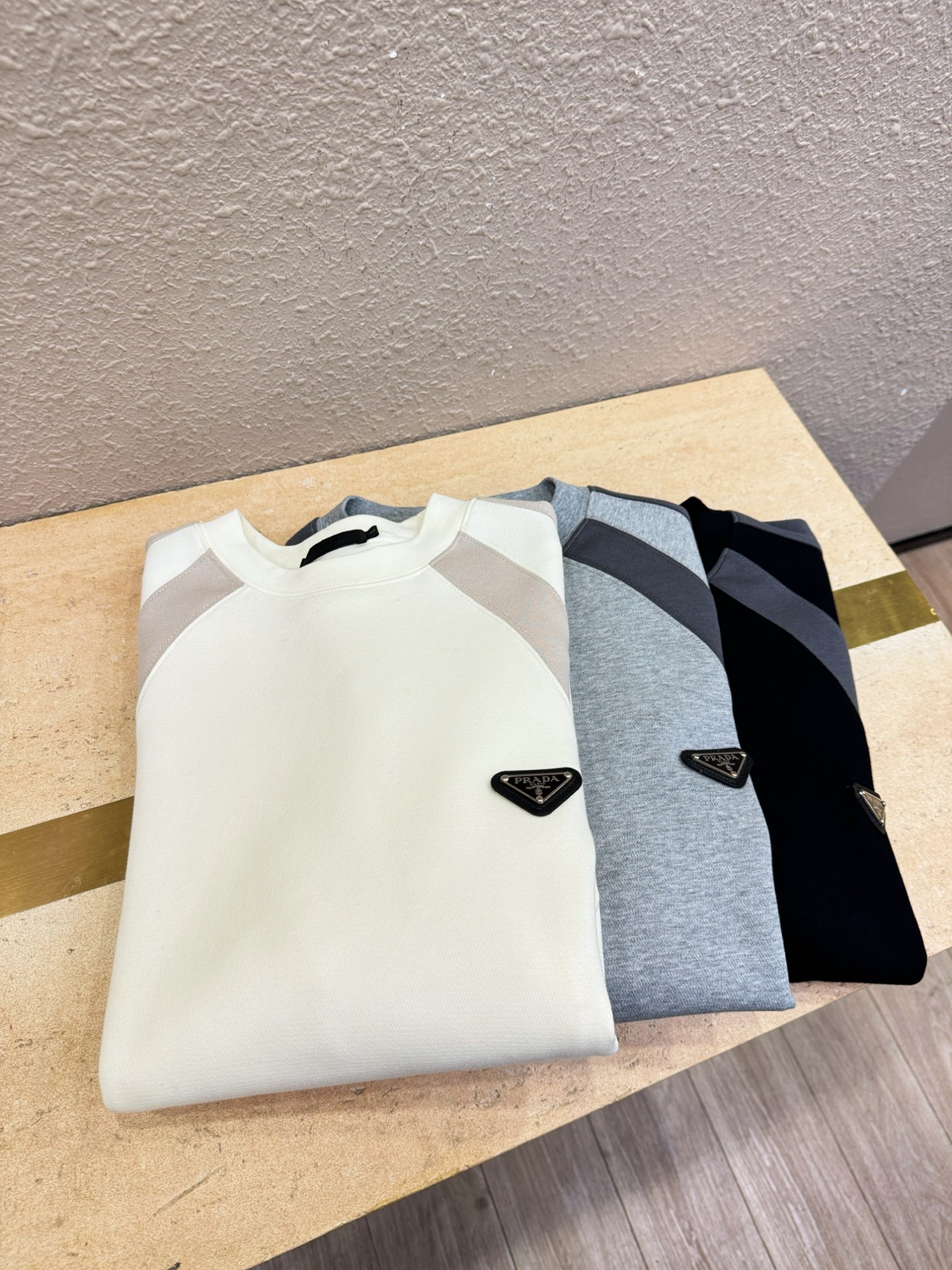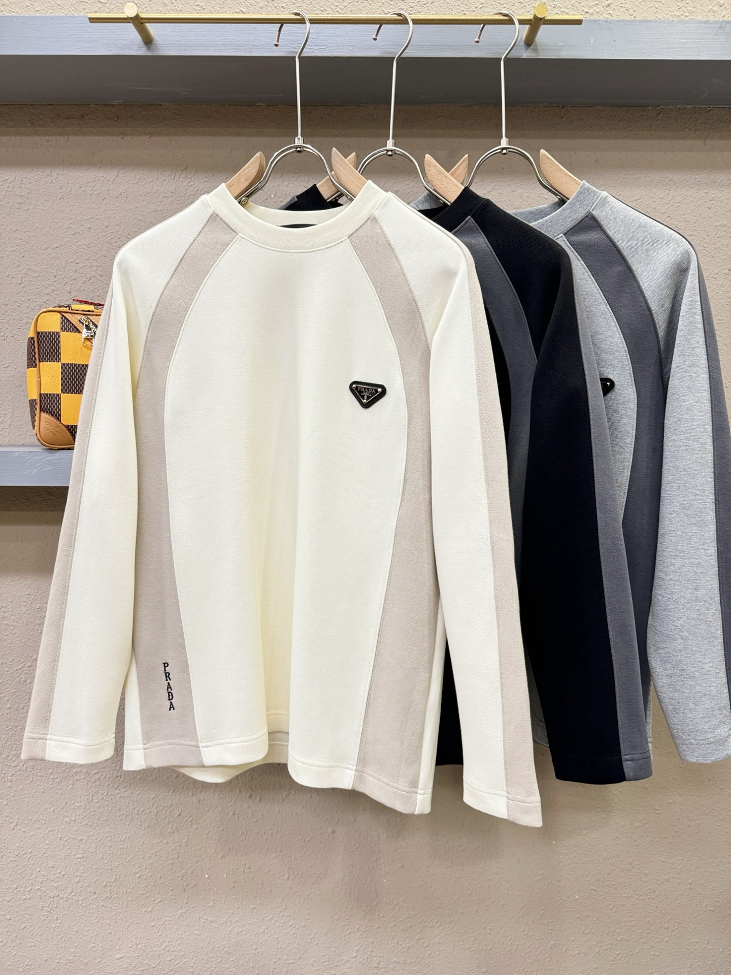 Tags: Breathable Long Sleeve, Designer Crewneck Top, Luxury Fashion Shirt, Men's Logo Tee, Prada Long Sleeve Shirt, Versatile Men's Shirt