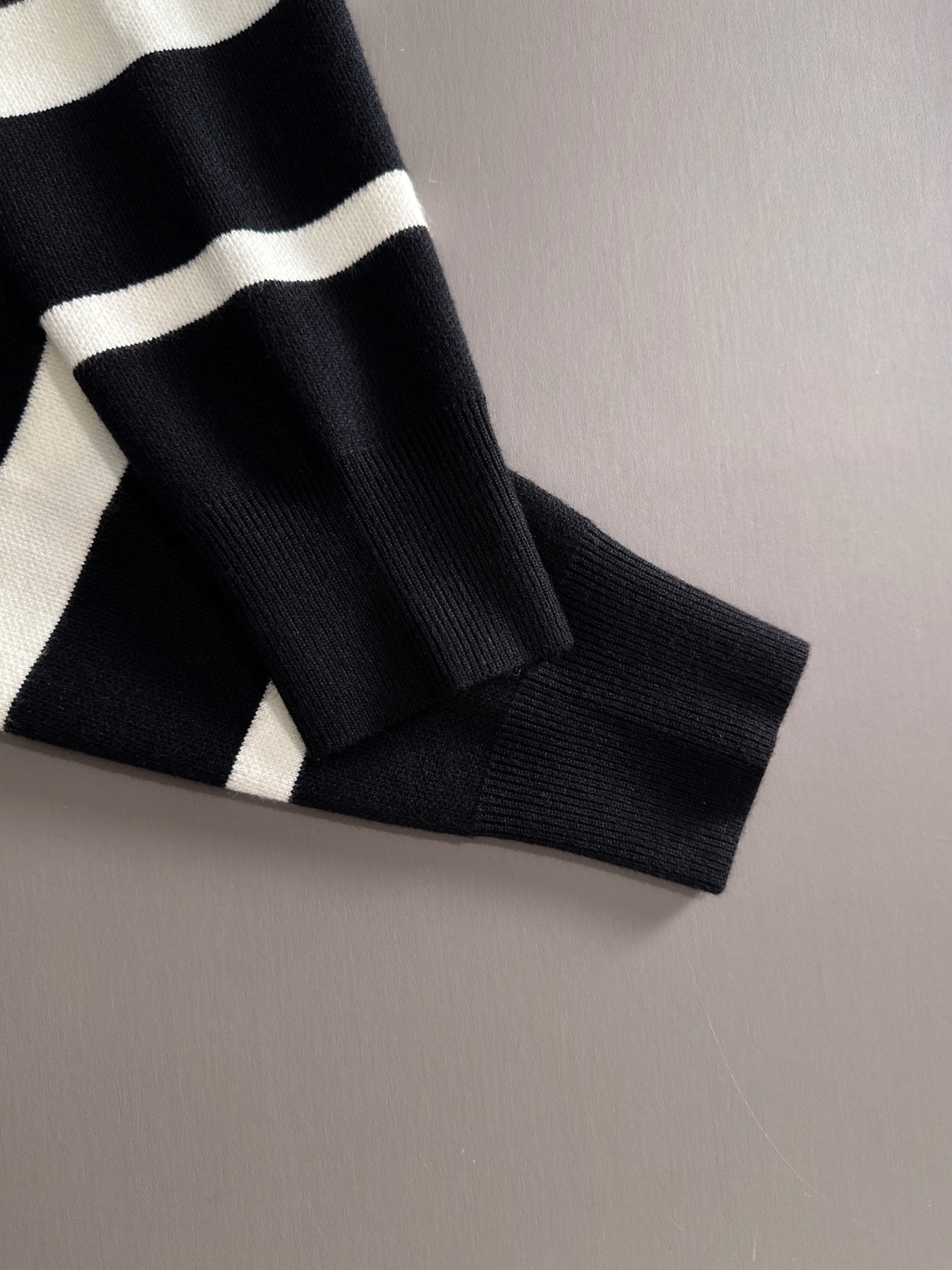 Tags: Black And White Sweater, Classic Fit Sweater, Designer Sweater, Metal Triangle Logo, Prada Wool Sweater, Striped Sweater Men
