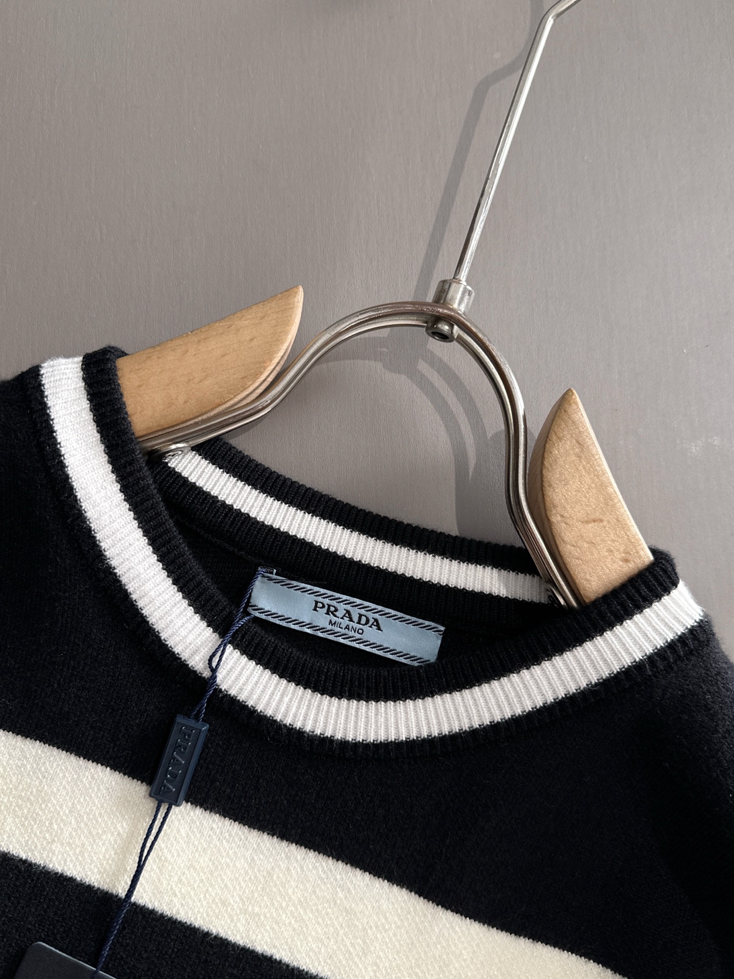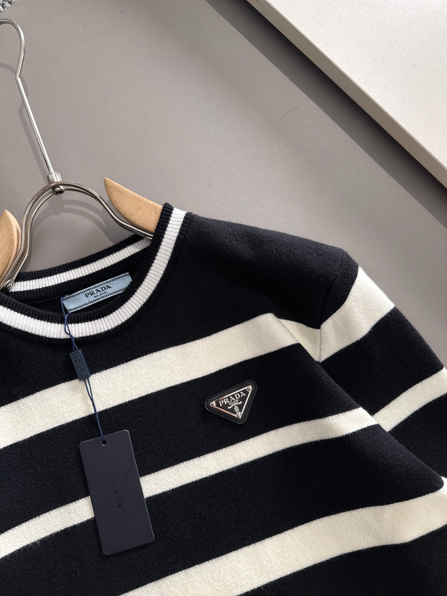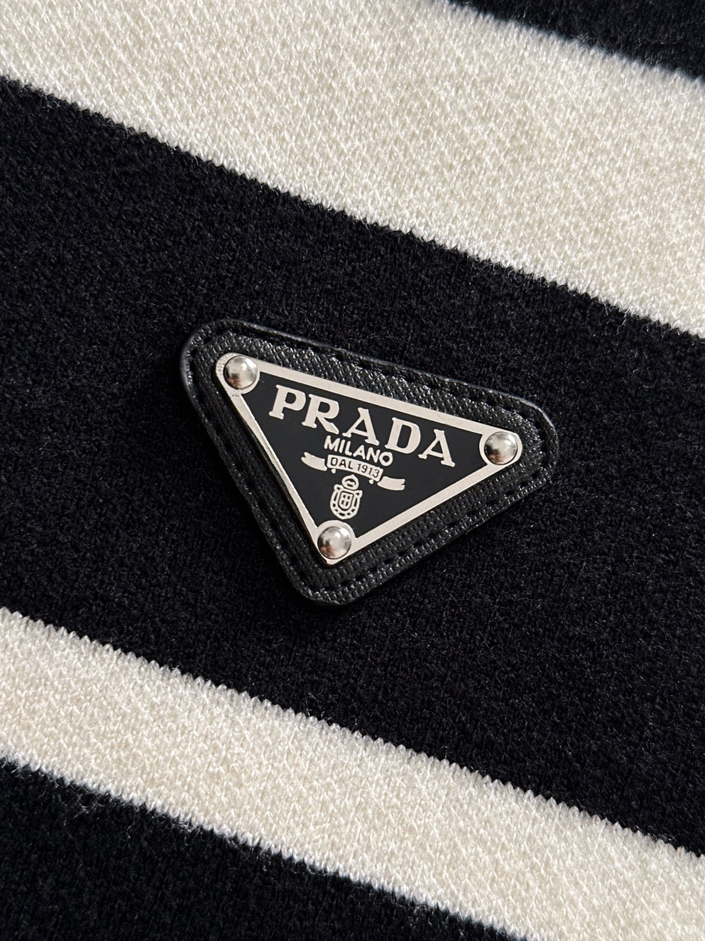 This Prada wool sweater is a timeless piece that combines luxury and style. Crafted with meticulous attention to detail, it features a classic fit and a striking striped design.