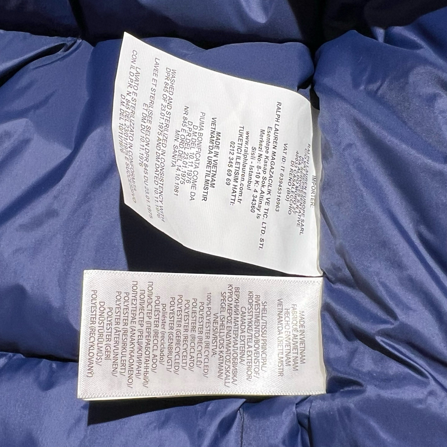 Stay warm in style with this Ralph Lauren Gorham down jacket, featuring a detachable hood and water-resistant fabric. Perfect for cold weather!