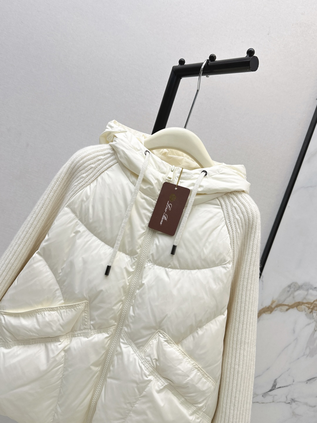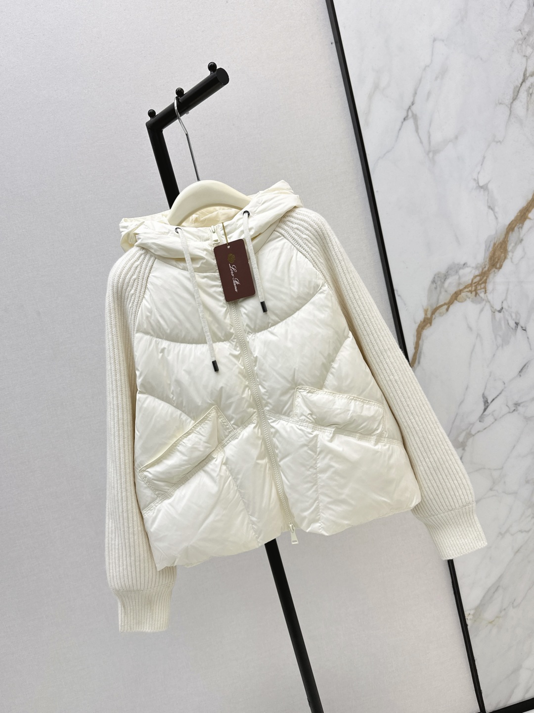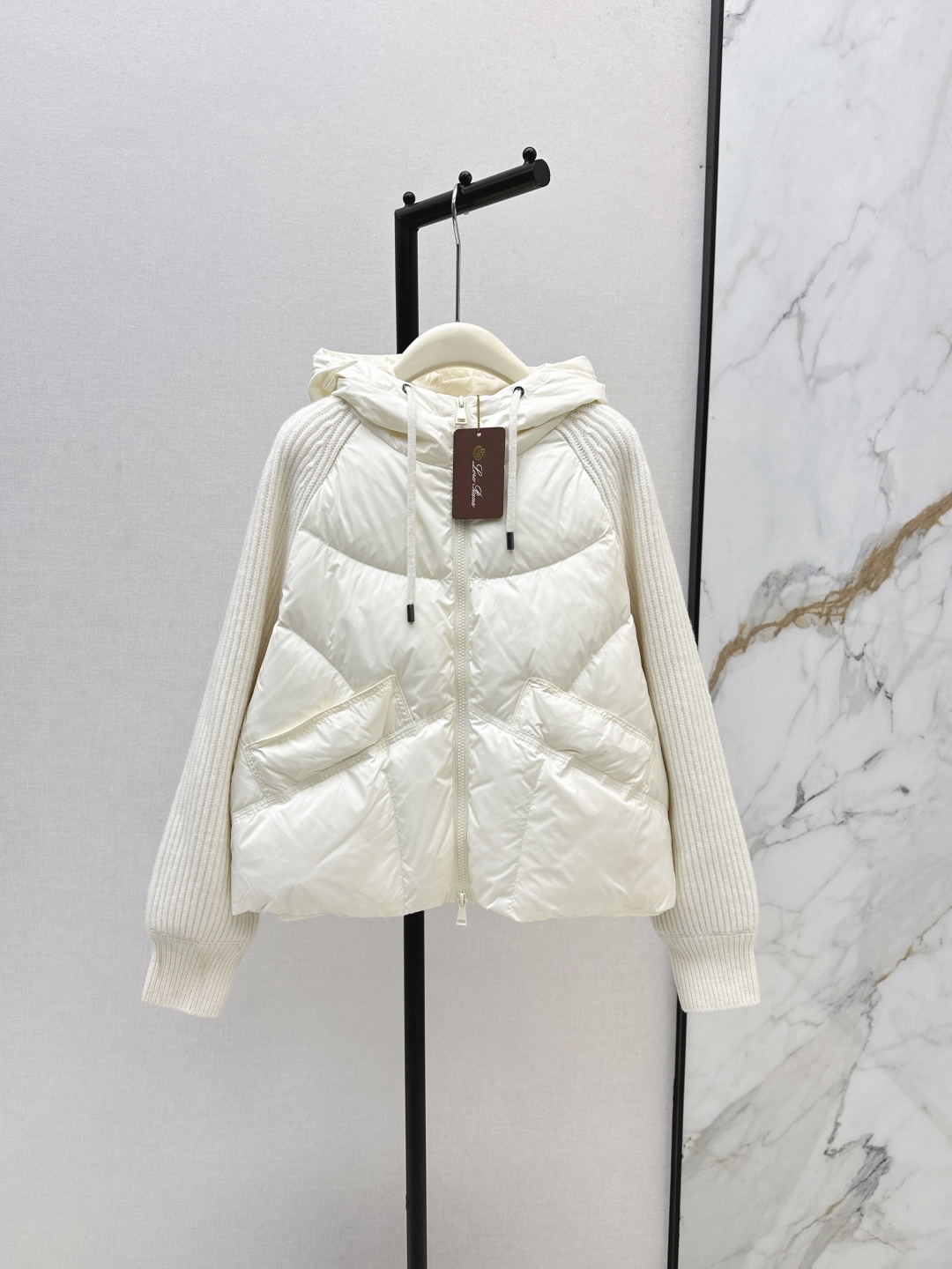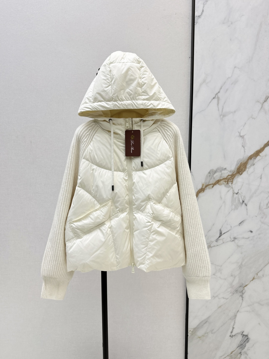 Tags: Designer Down Jacket, Hooded Down Coat, Winter Fashion Jacket, Women's Down Jacket, Wool Sleeve Jacket