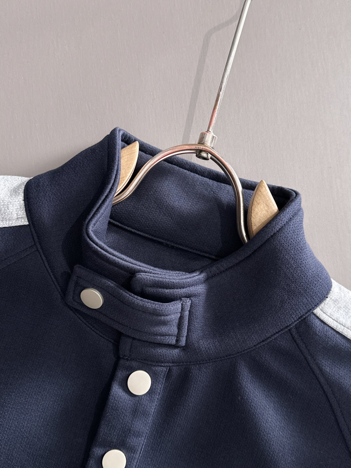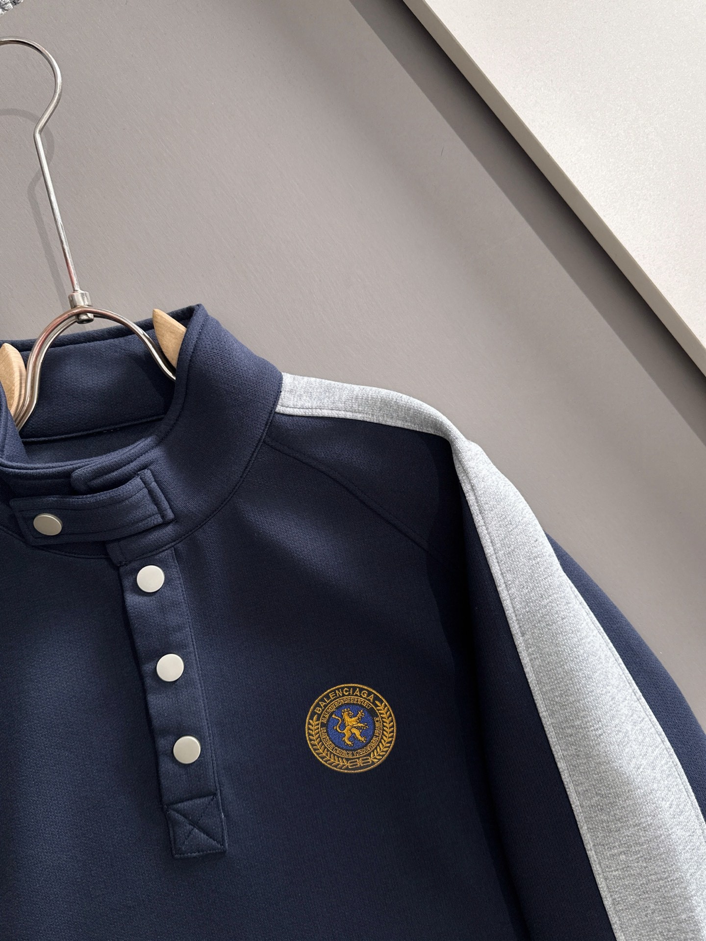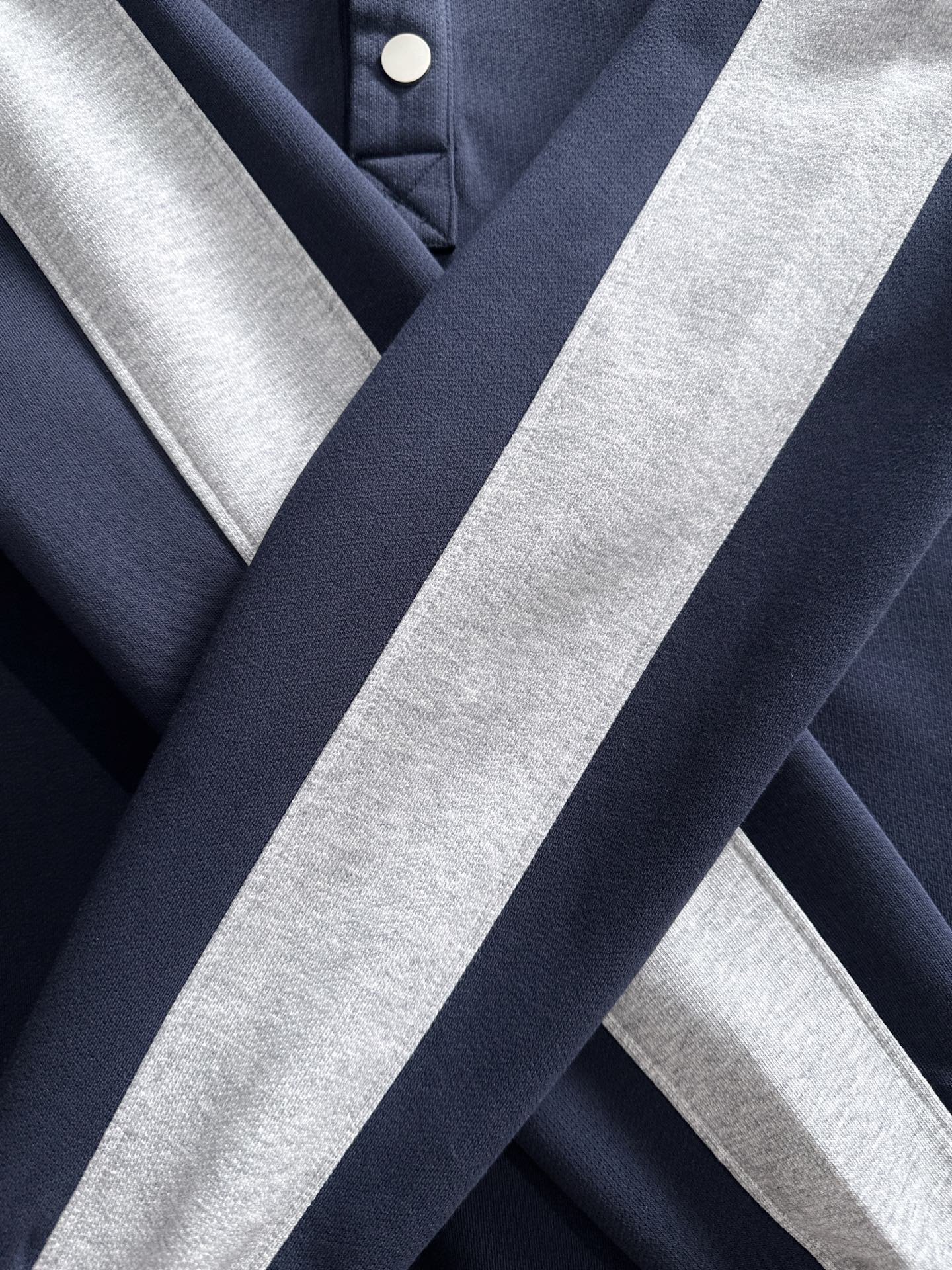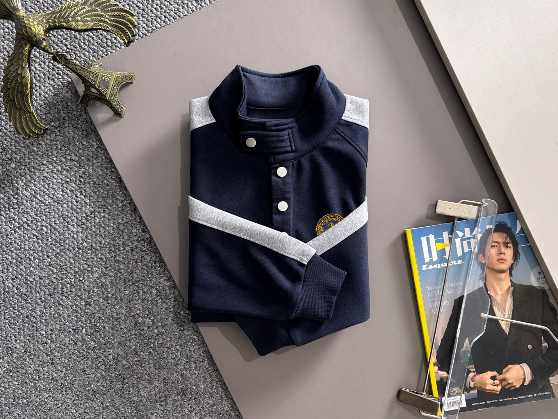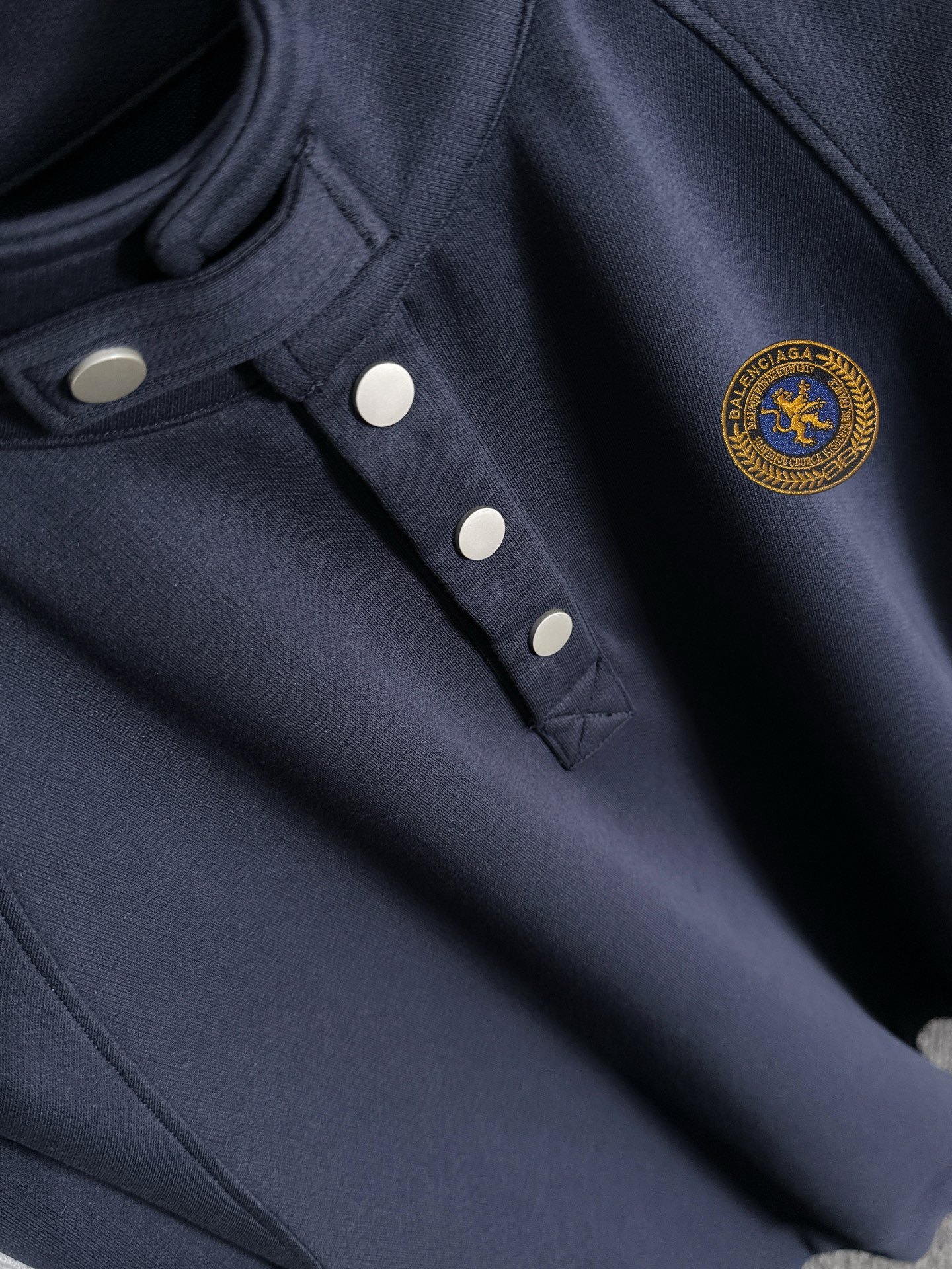 - Button-Up Collar: The button-up collar adds a touch of refinement to the casual sweatshirt style.