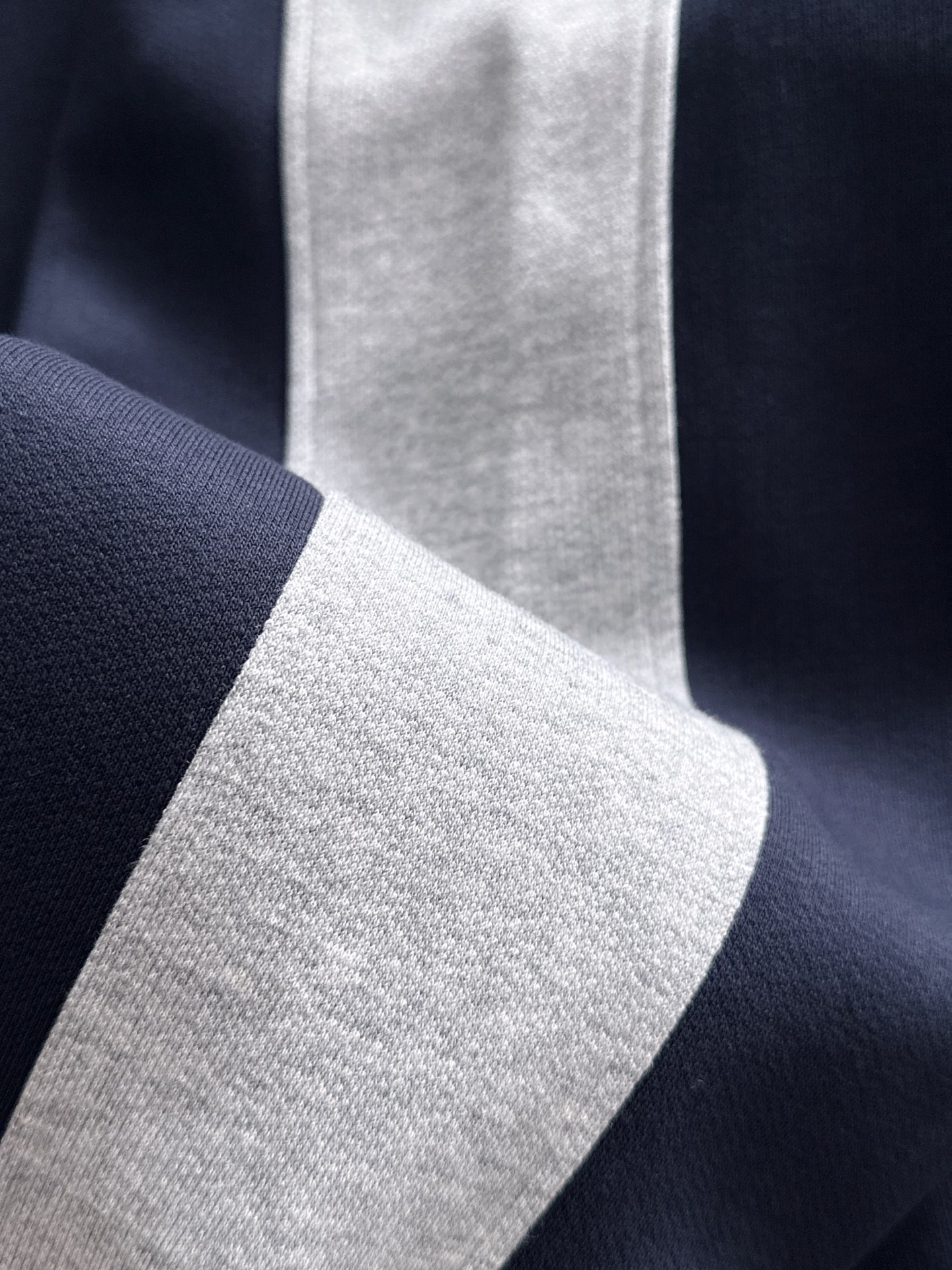Tags: Button Up Collar Sweatshirt, Embroidered Crest Sweatshirt, Long Sleeve Sweatshirt, Pullover Sweatshirt, Striped Sleeve Sweatshirt, Vintage Style Sweatshirt