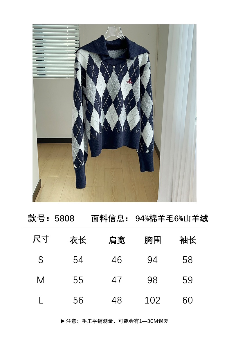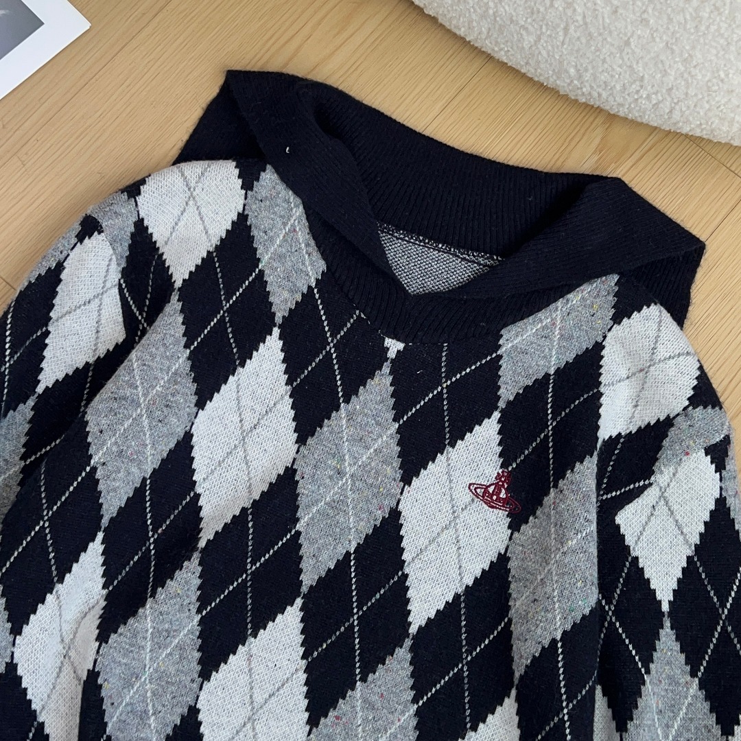 Tags: Argyle Knit Sweater, College Style Sweater, Navy Collar Sweater, Saturn Embroidery Sweater, Vivienne Westwood Sweater