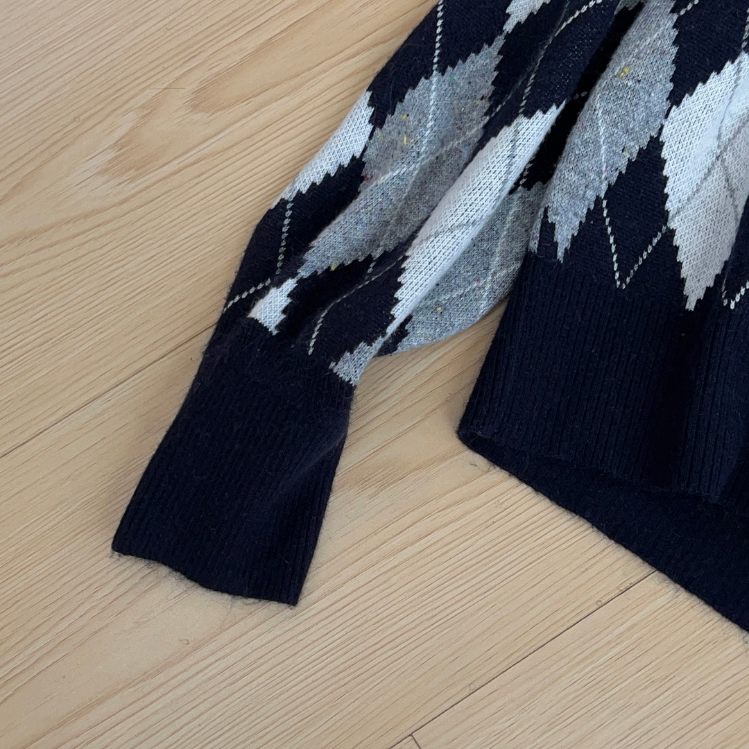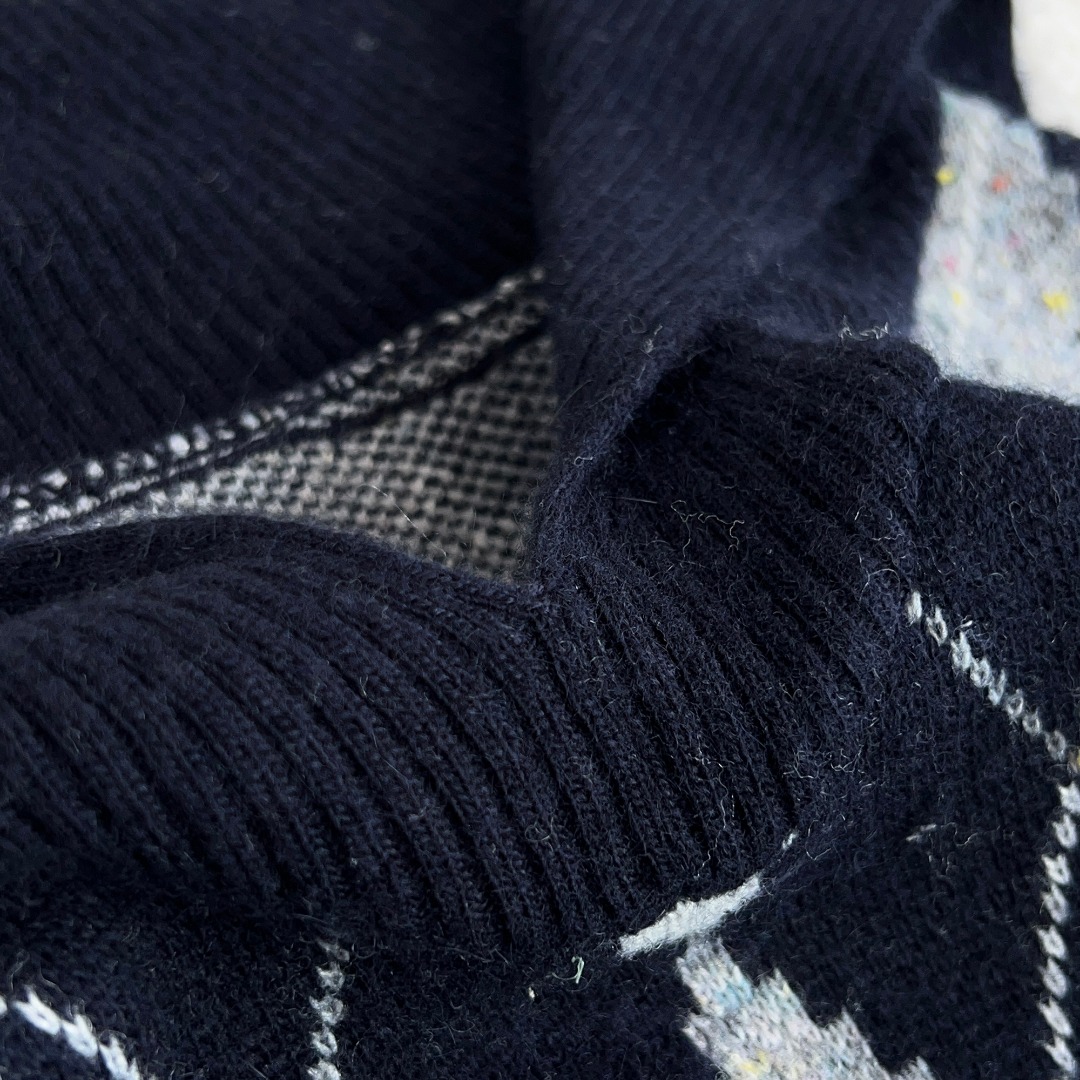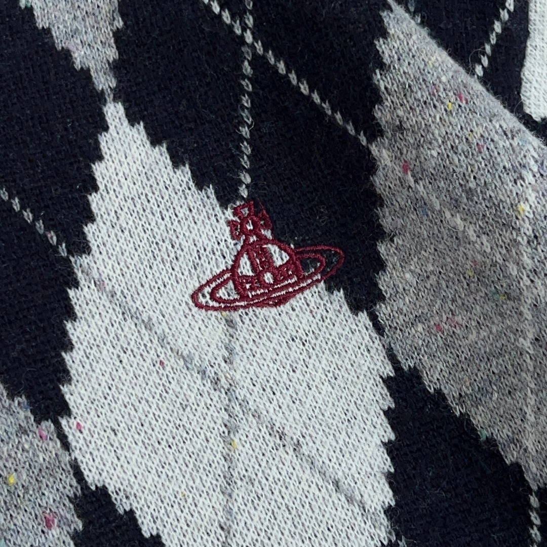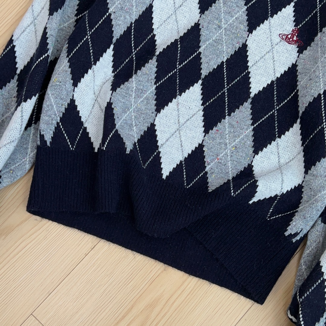 Vivienne Westwood Argyle Knit Sweater College Style Navy Collar