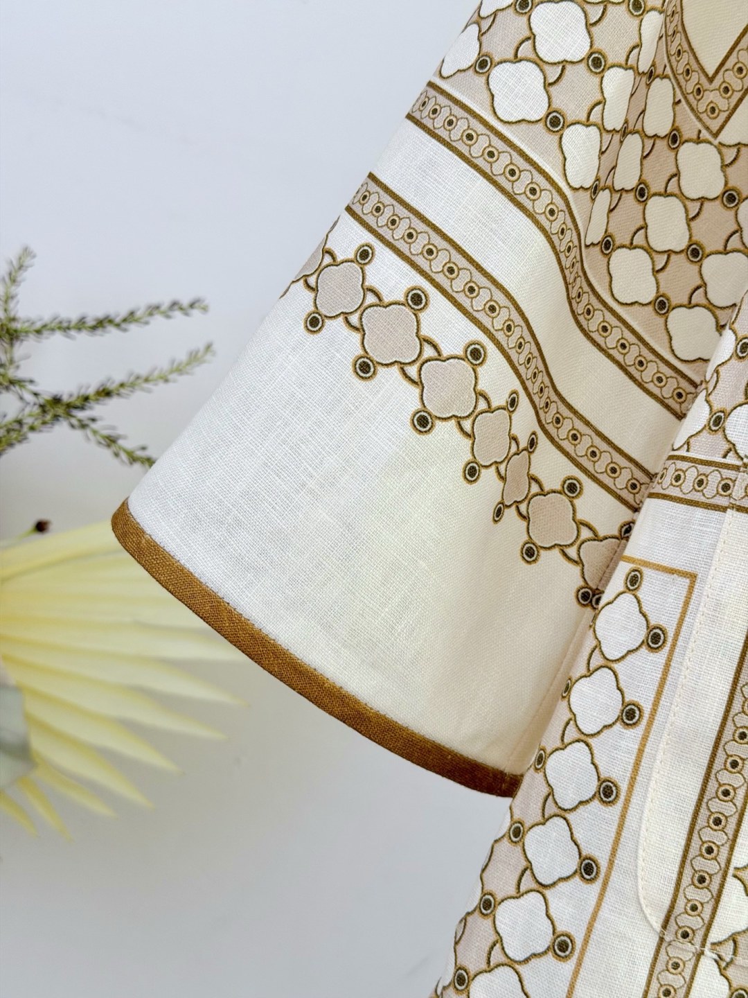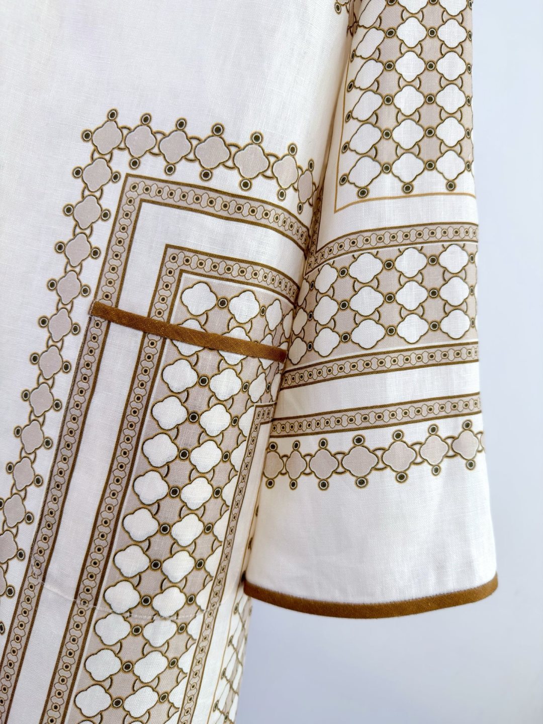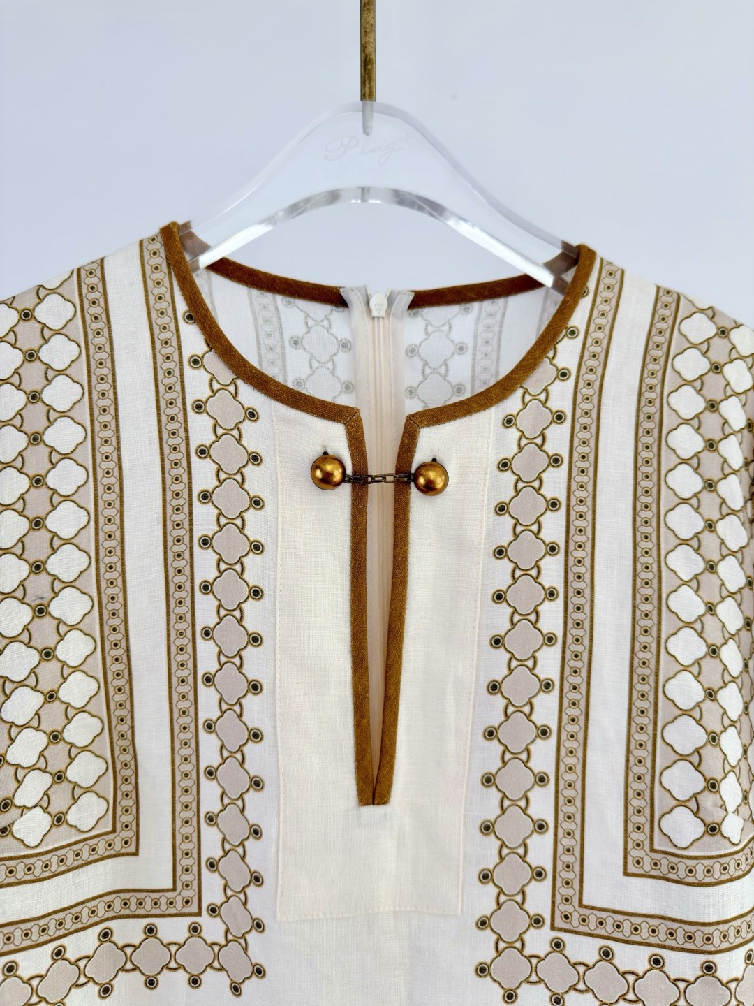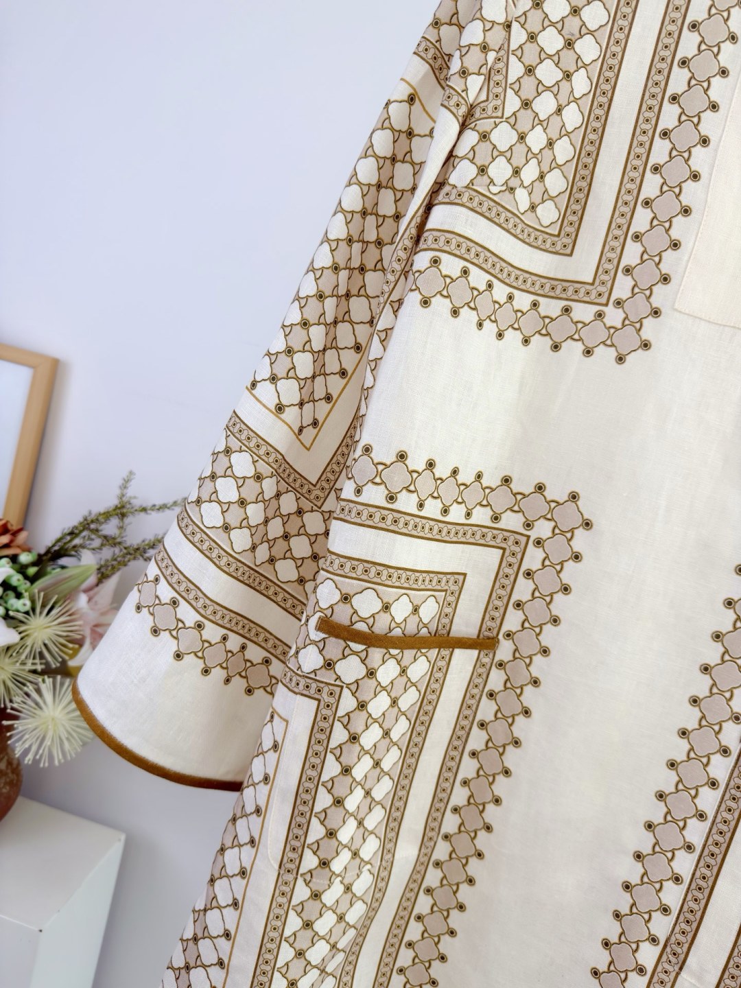 Tags: Contrast Trim Dress, Fall Fashion Dress, Geometric Print Dress, Linen Mini Dress, Long Sleeve Mini Dress, Zimmermann Mini Dress