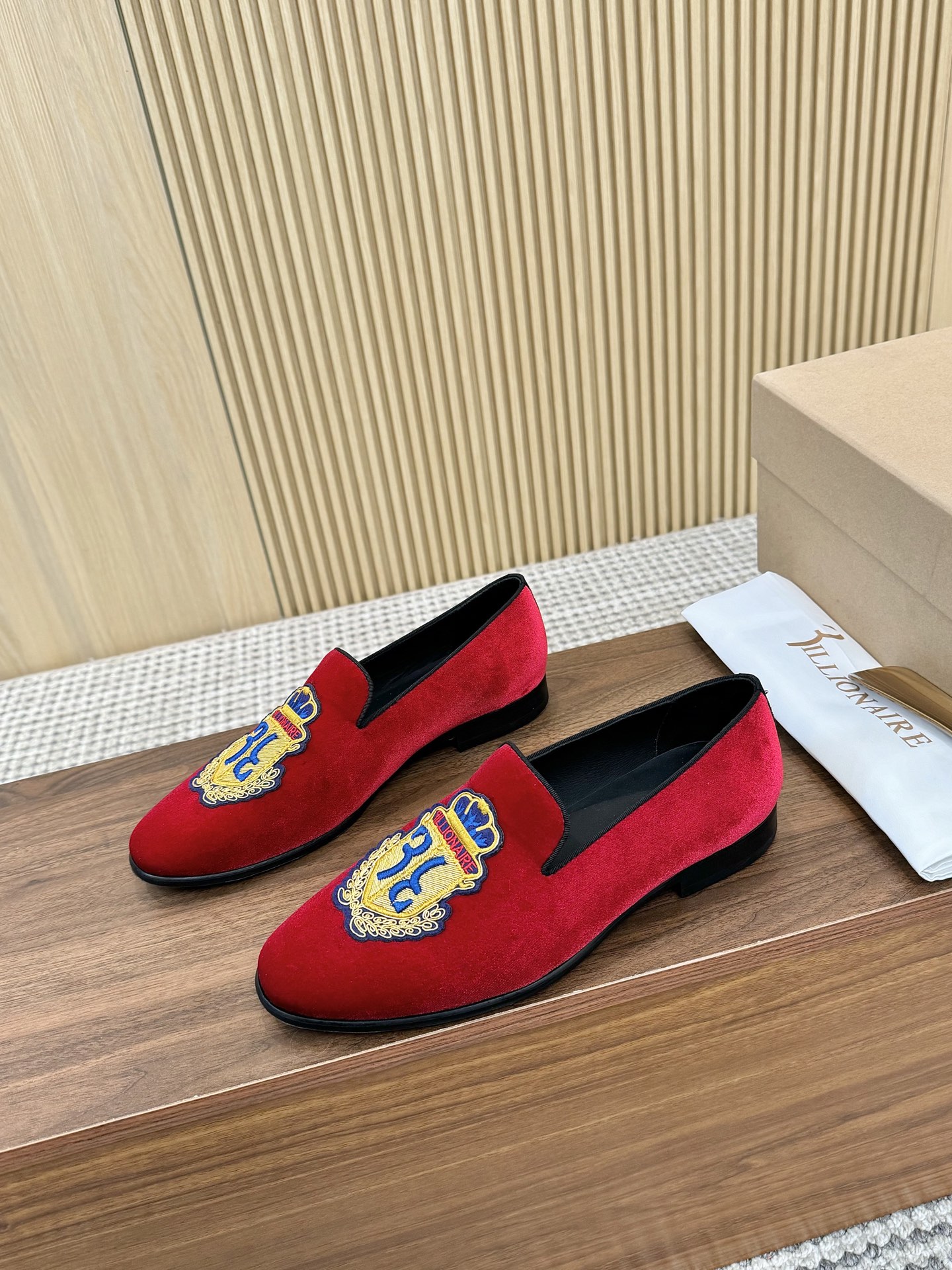 Tags: Billionaire Loafers, Crown Embroidered Loafers, Designer Men's Shoes, Embroidered Slip On Shoes, Luxury Men's Footwear, Men's Velvet Loafers