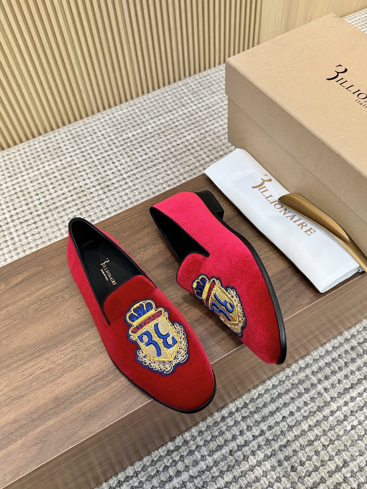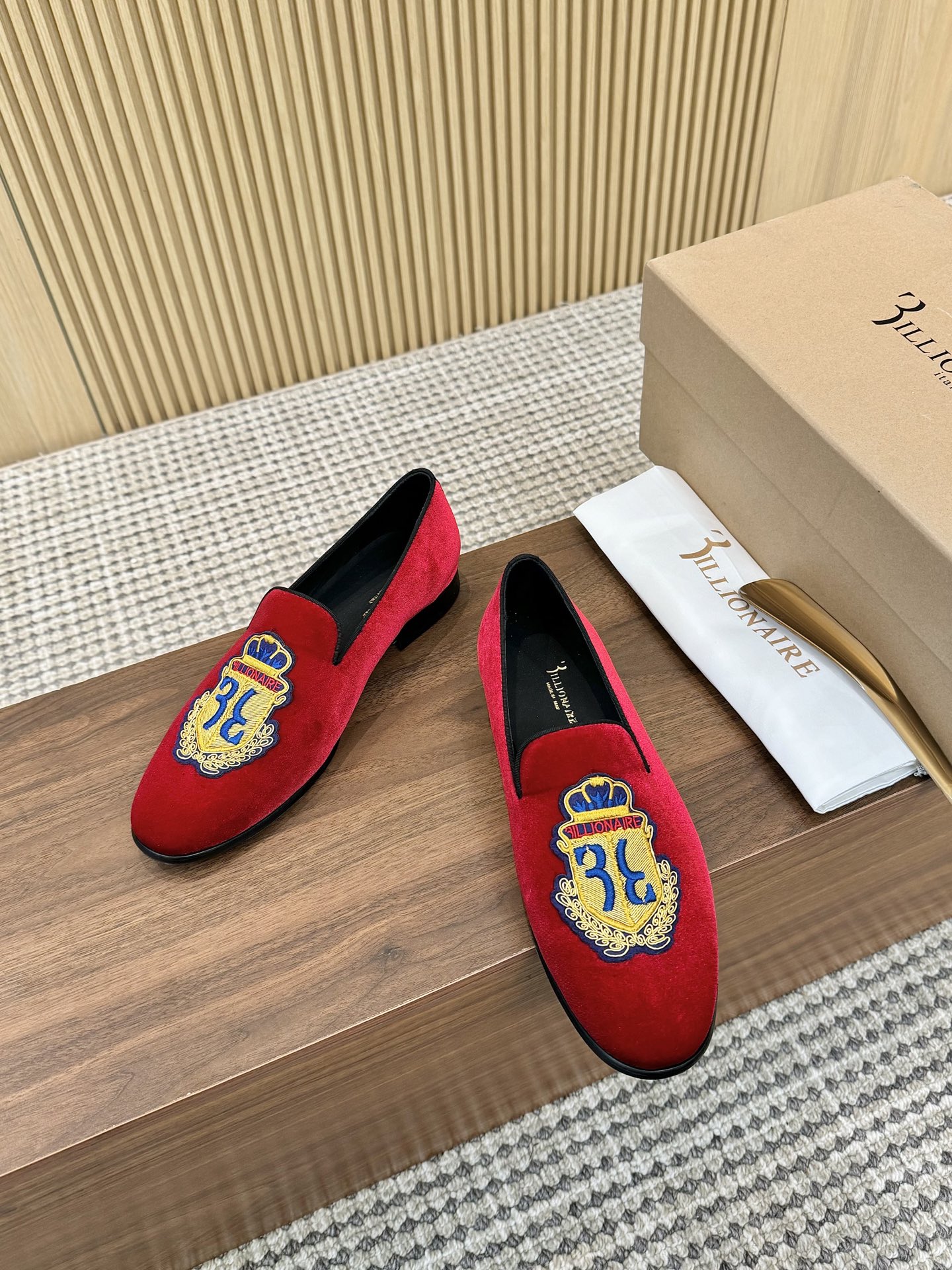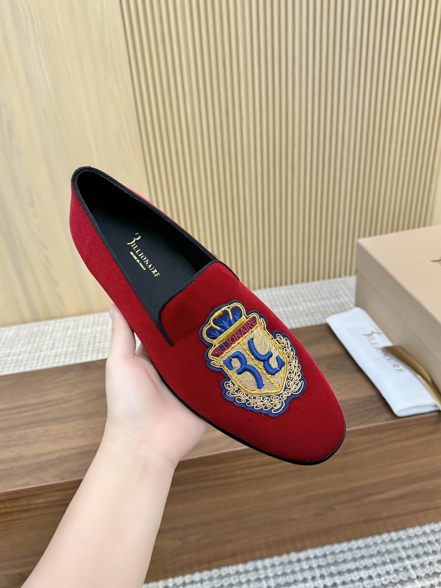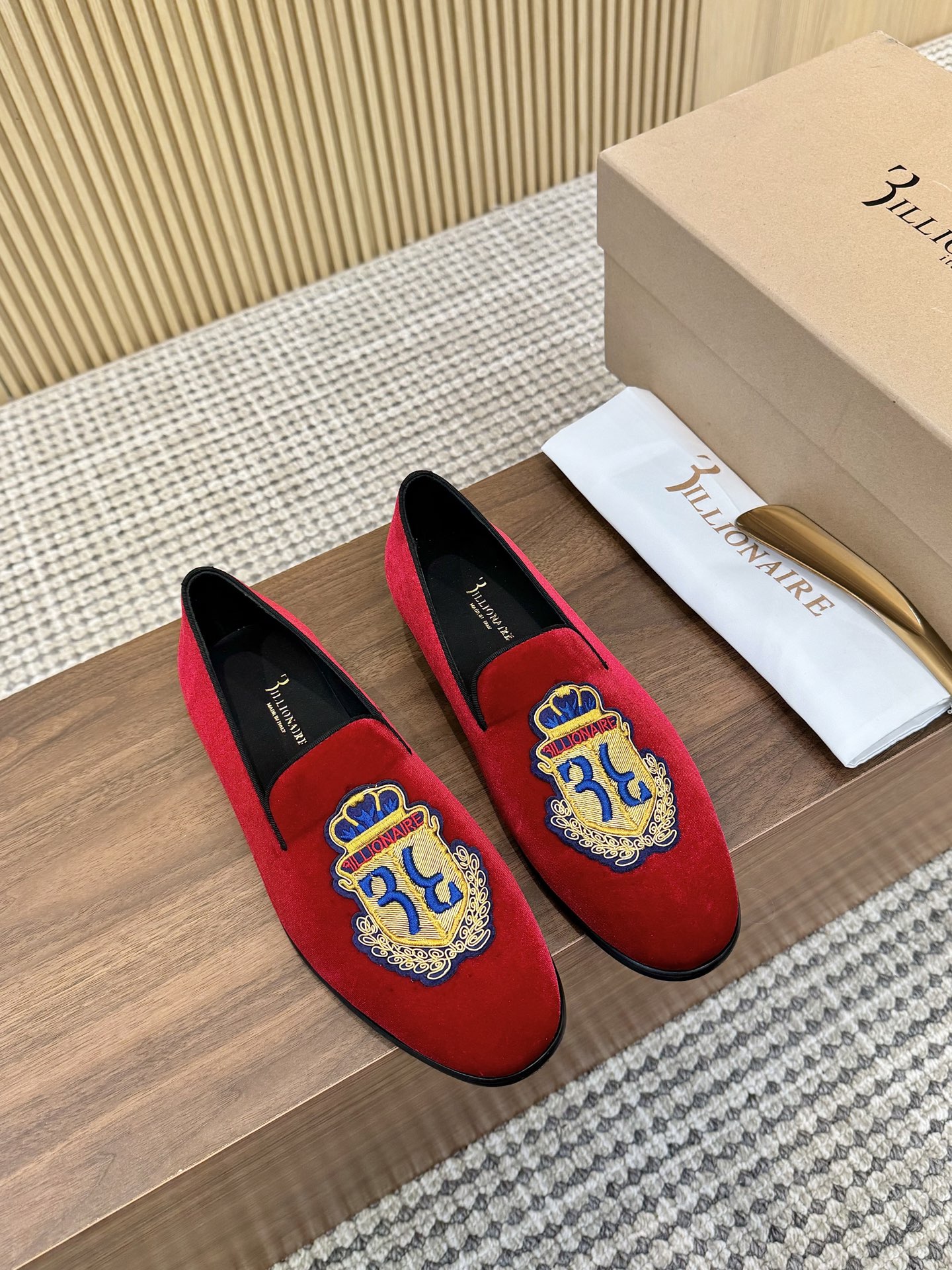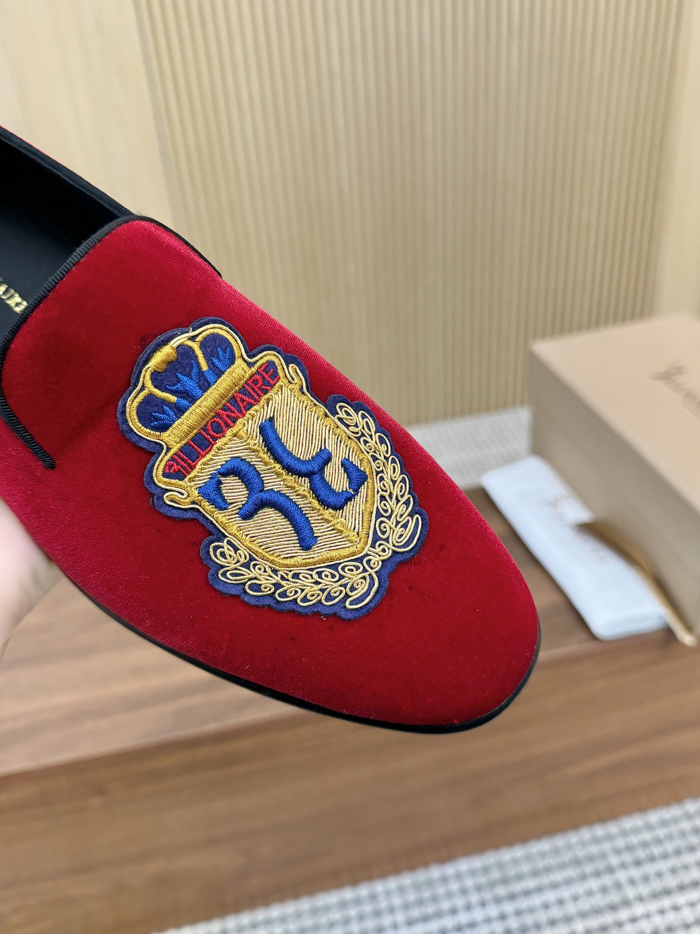 Elevate your style with these Billionaire velvet loafers. Featuring exquisite embroidery, a leather lining, and a durable sole, these shoes offer both luxury and comfort.
