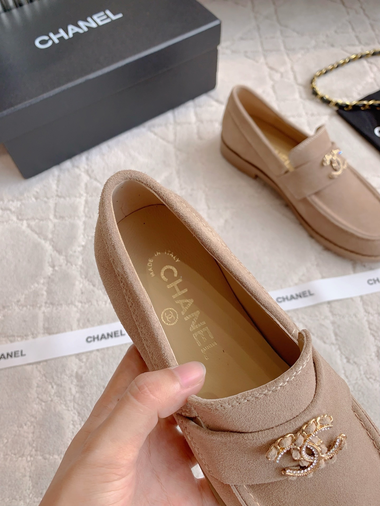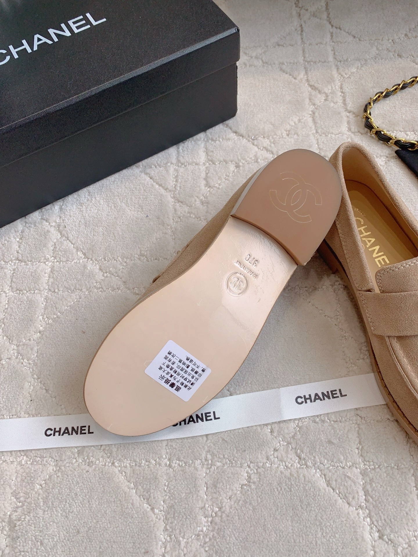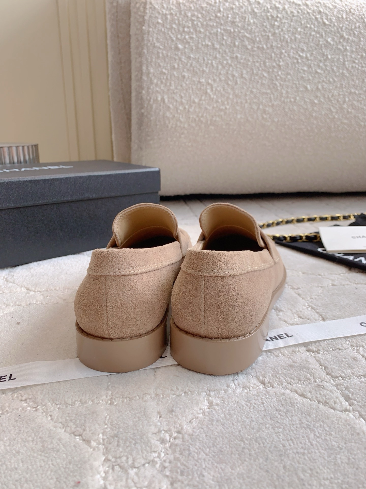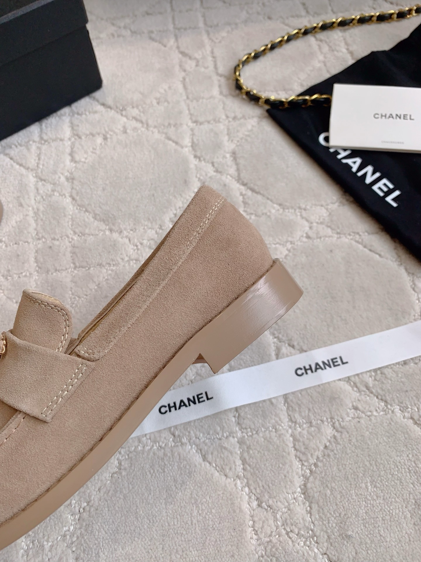 Tags: Beige Loafers, Chain Buckle Shoes, Chanel Loafers, Designer Loafers, Leather Loafers, Women's Classic Shoes