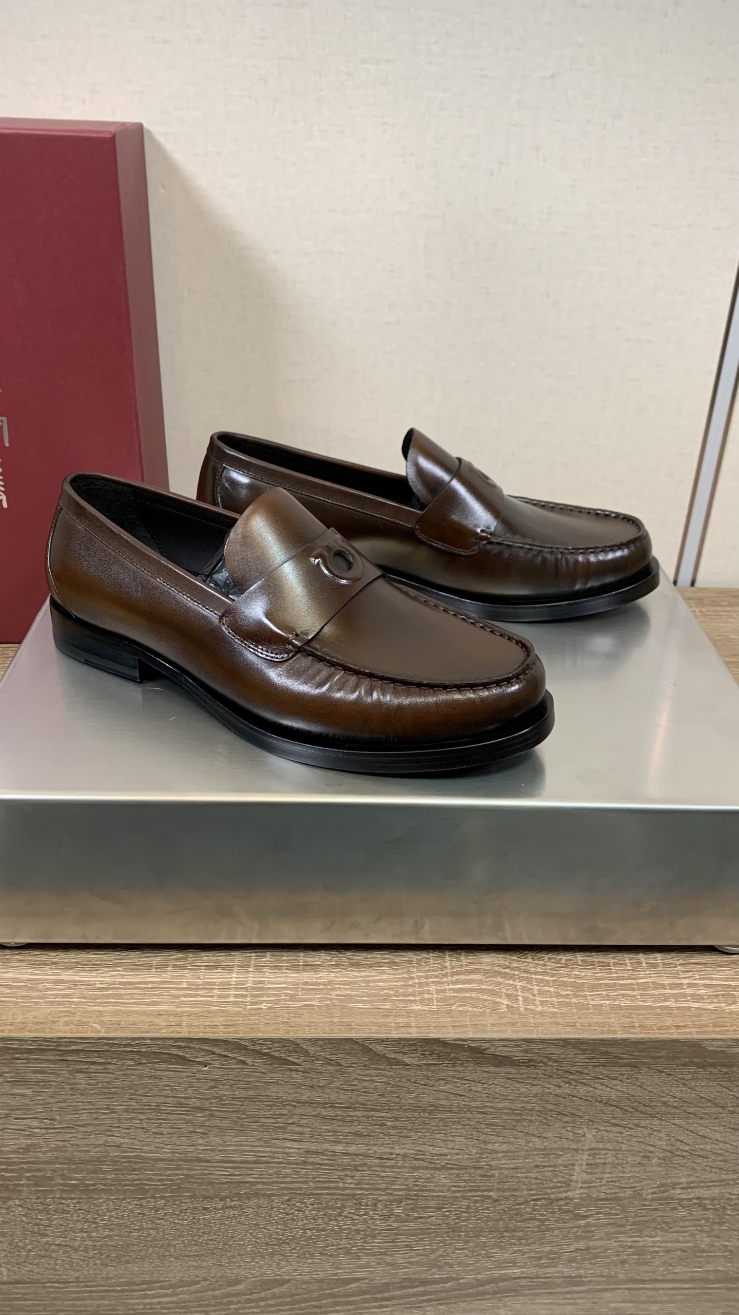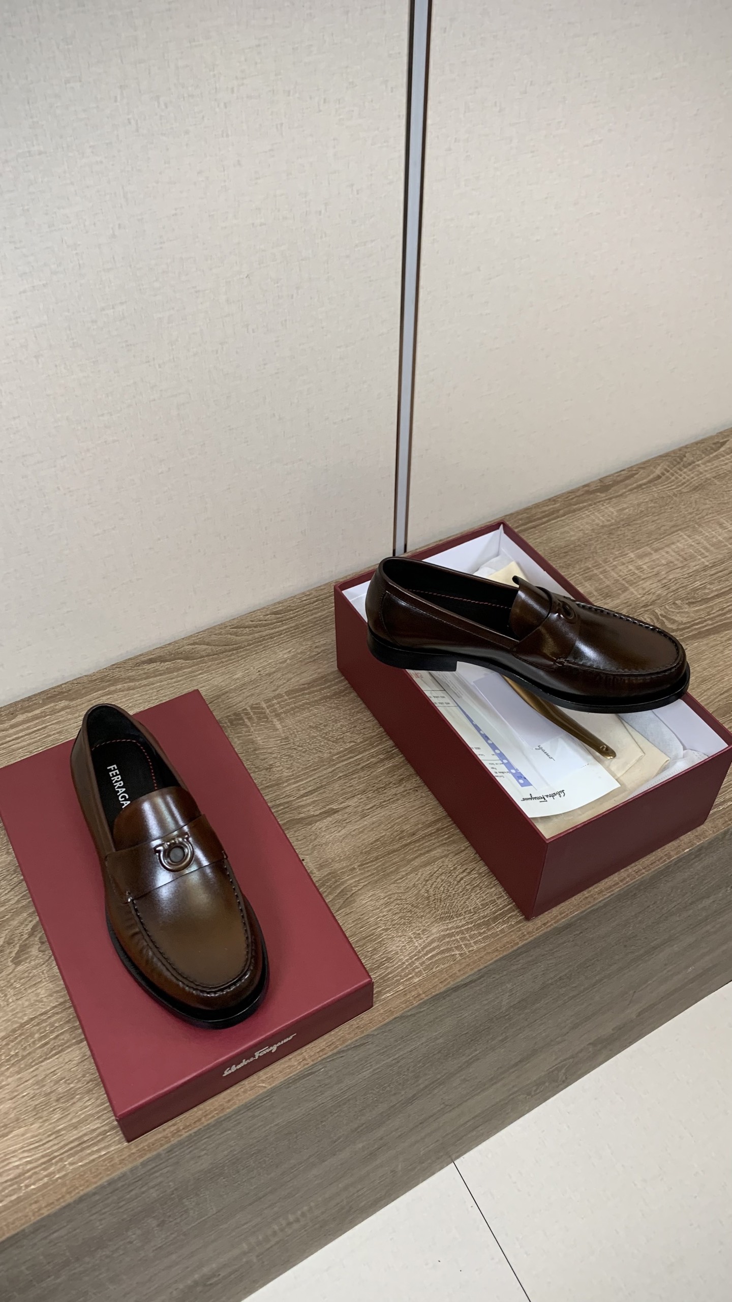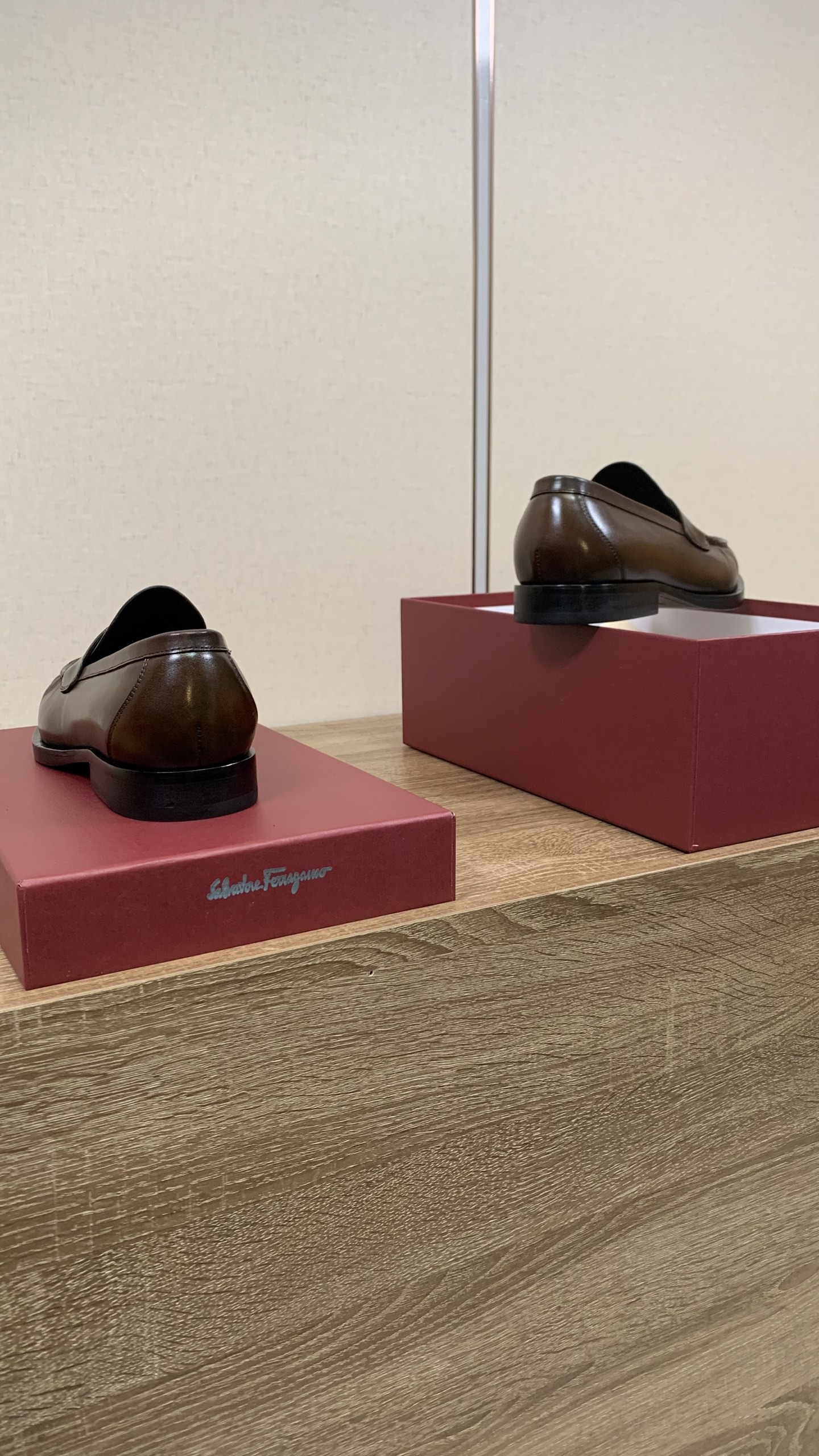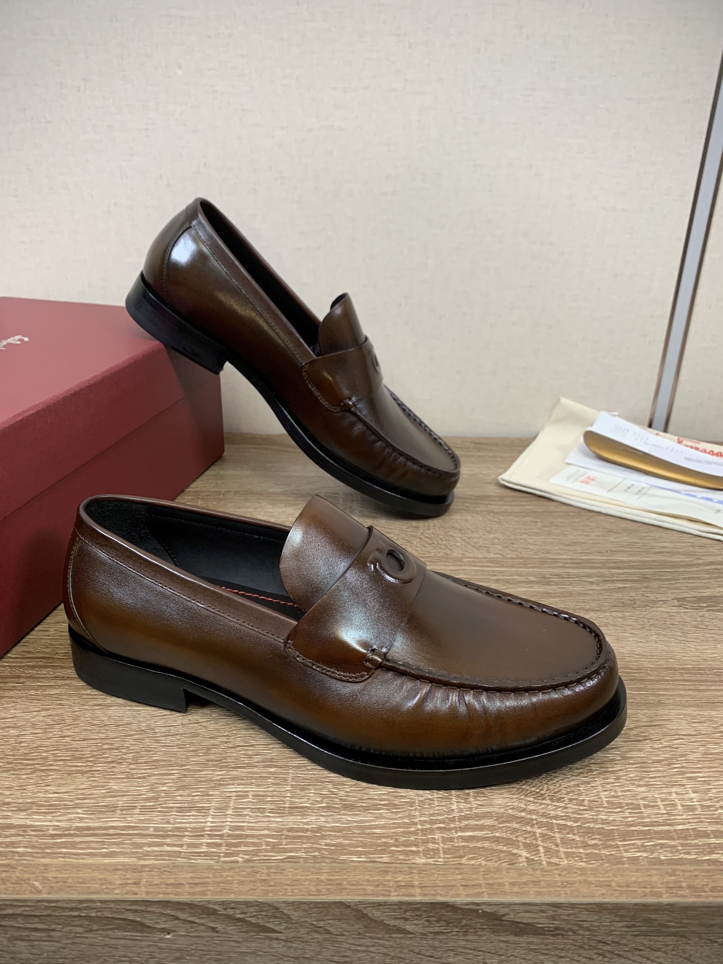 Tags: Business Casual Loafers, Calfskin Leather Shoes, Designer Men's Shoes, Ferragamo Loafers, Men's Brown Loafers, Men's Leather Shoes