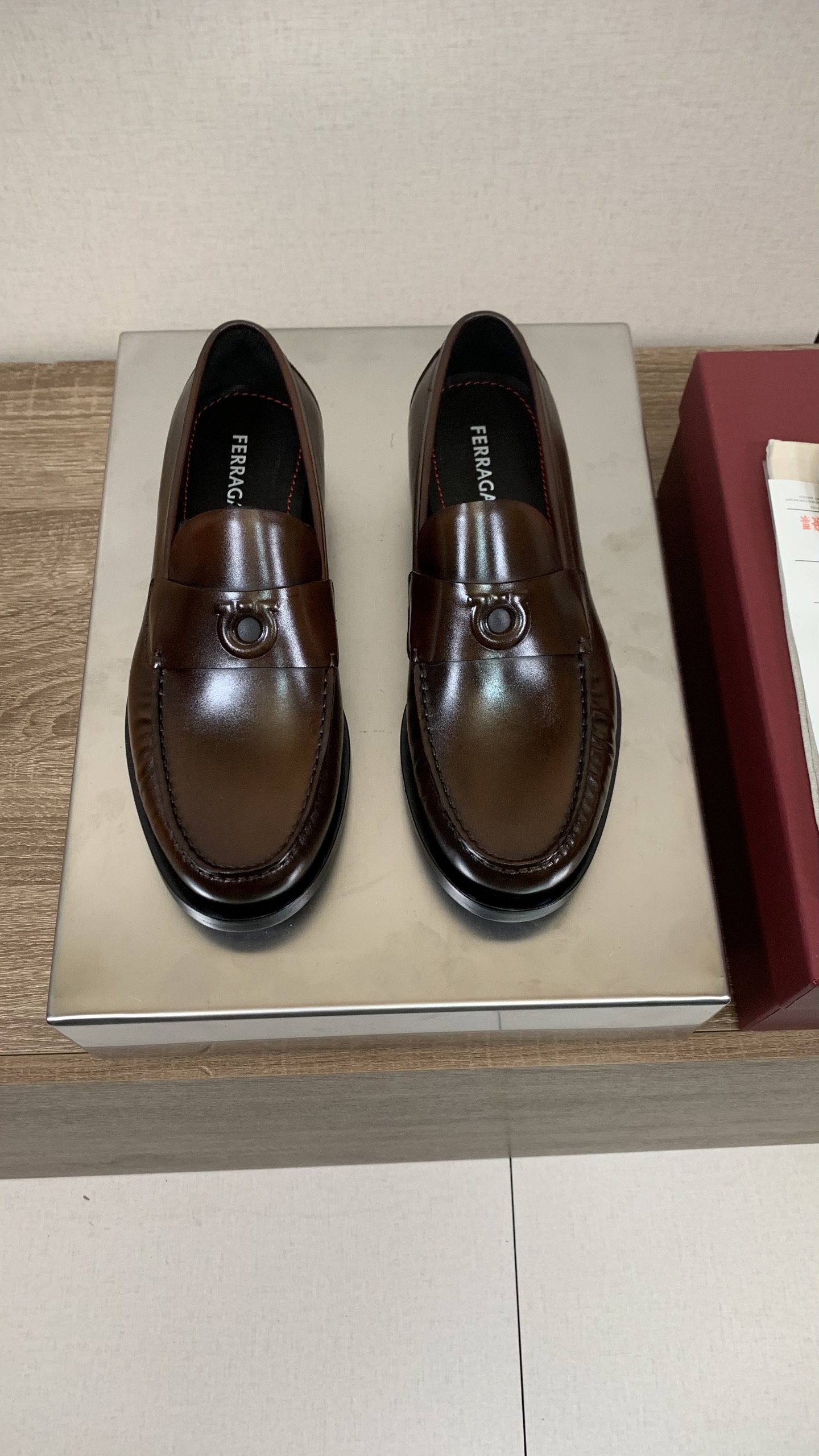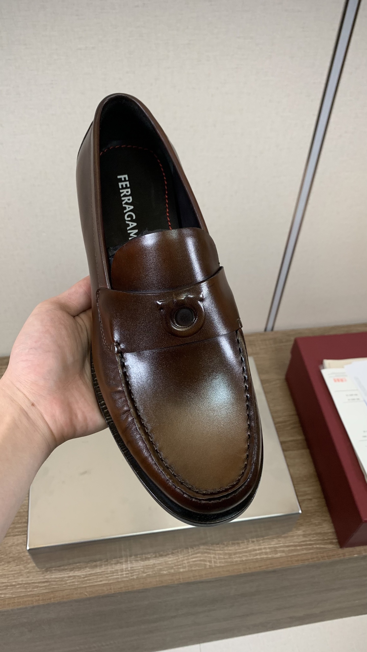 Ferragamo Men's Brown Leather Loafers - Business Casual Shoes Size 39-46