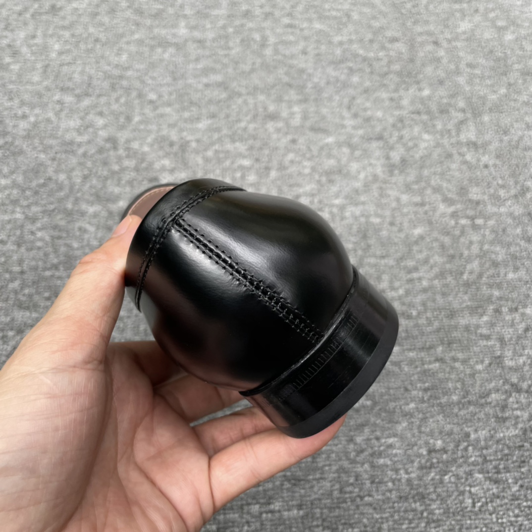 - Material: Calfskin leather upper, leather insole and outsole, rubber heel