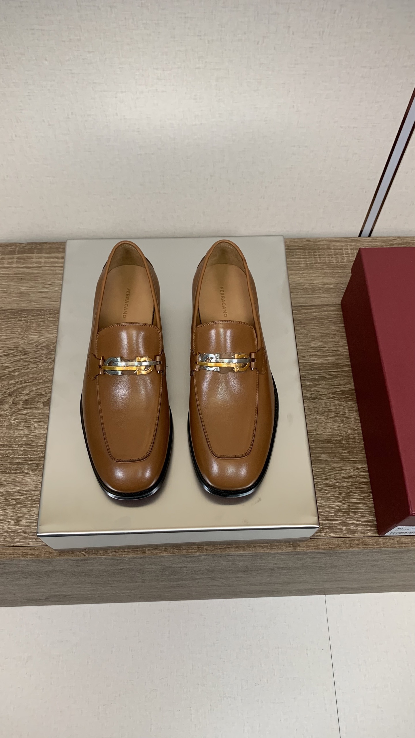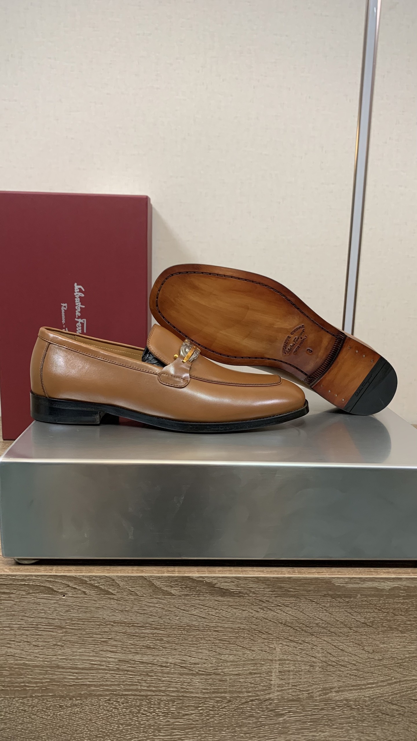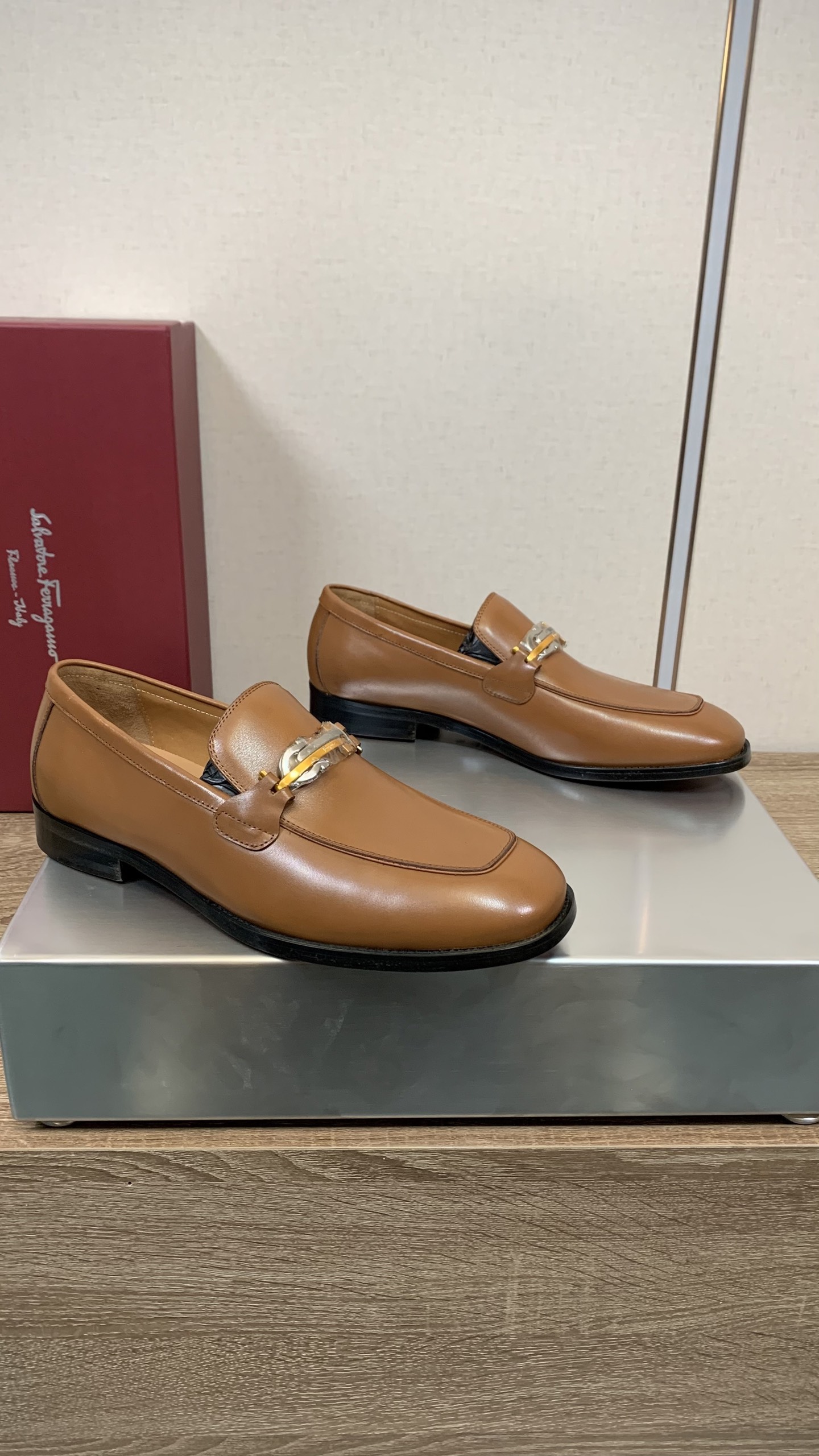 Elevate your style with these Salvatore Ferragamo leather loafers, featuring a comfortable fit and stylish buckle. Perfect for any occasion.