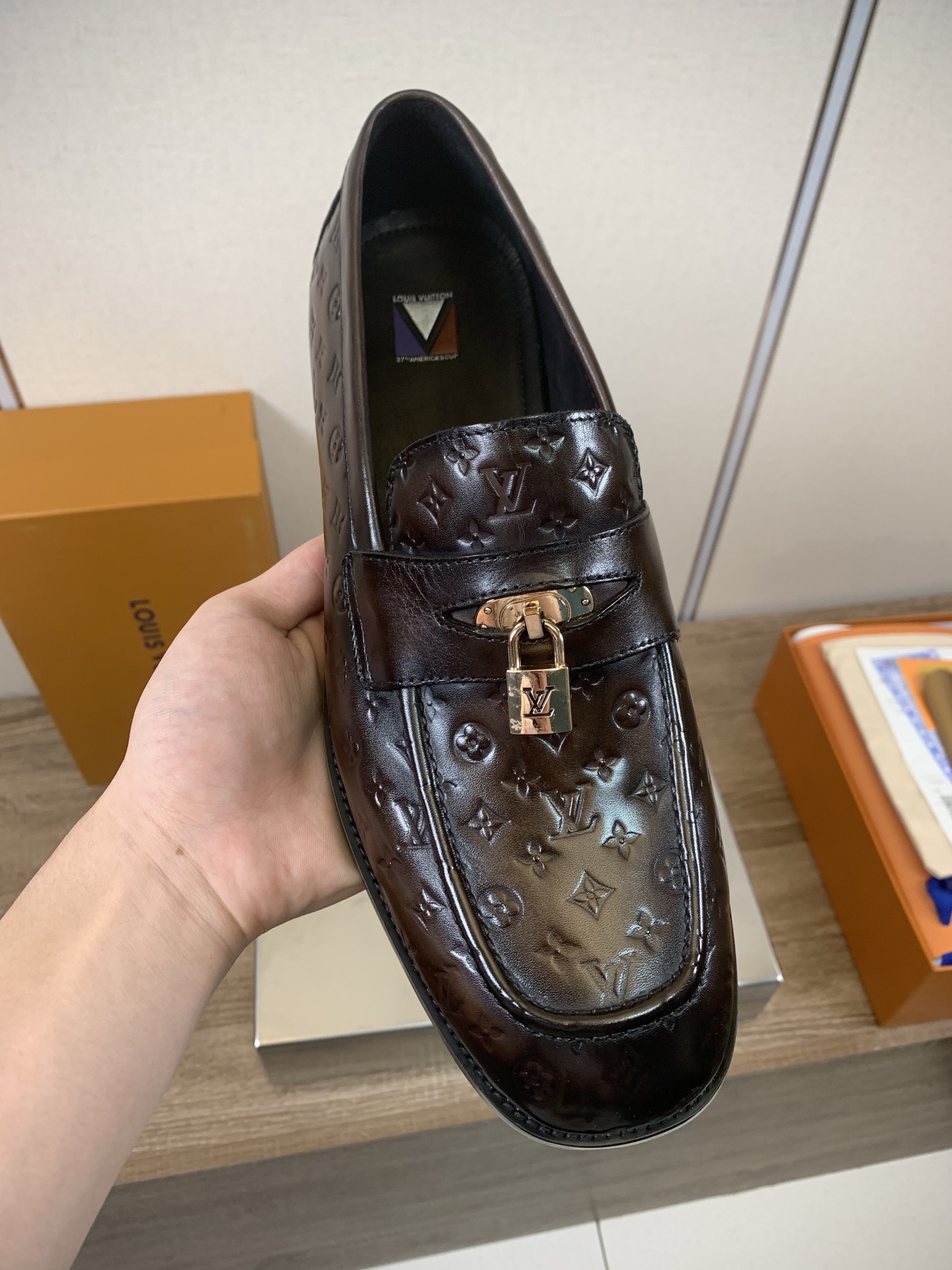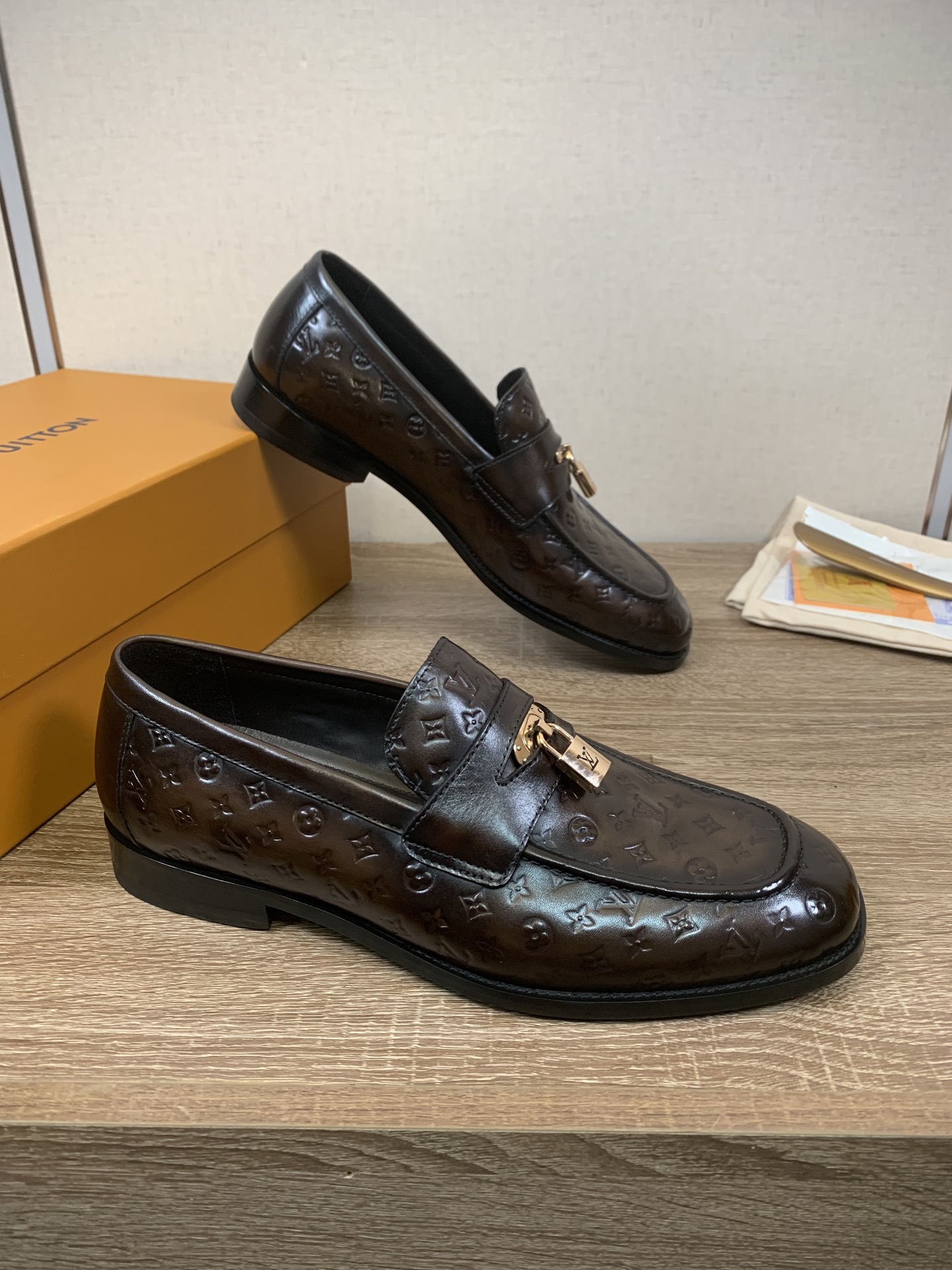 Tags: Business Casual Shoes, Designer Leather Shoes, Louis Vuitton Loafers, Luxury Men's Footwear, Men's Embossed Loafers