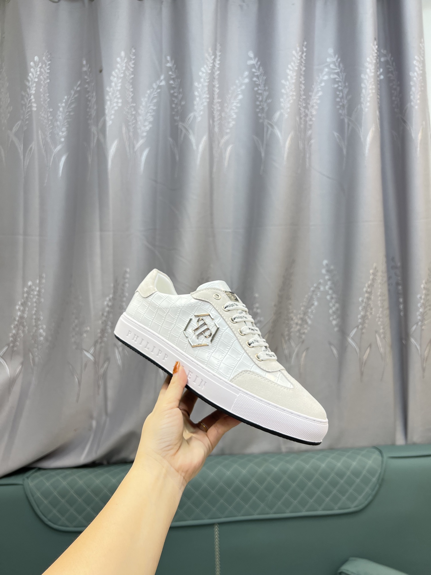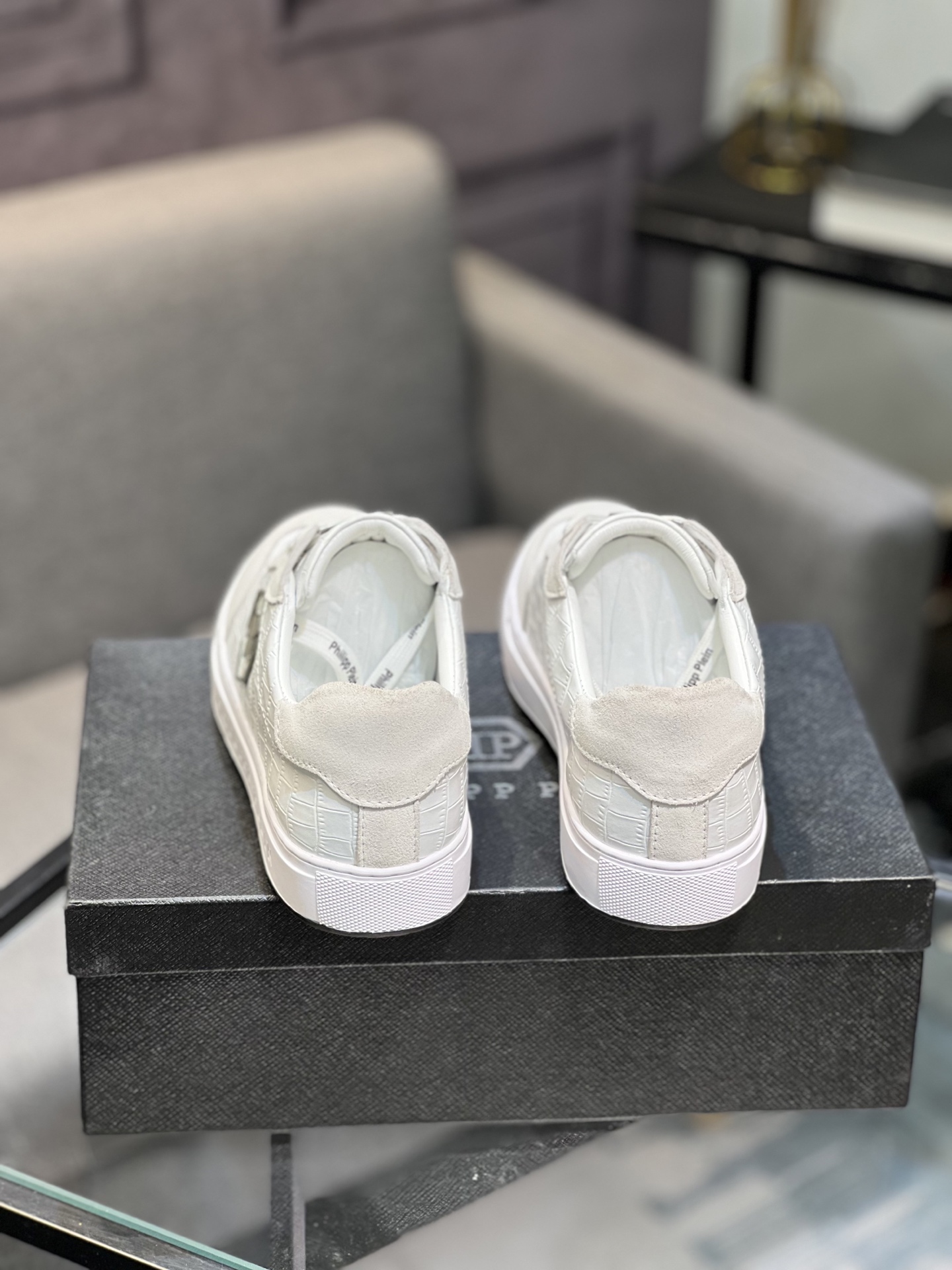The Philipp Plein Men's White Leather Sneakers are the epitome of luxury and style, designed to elevate your casual look. These sneakers blend high-quality materials with iconic branding, making them a standout addition to any wardrobe.