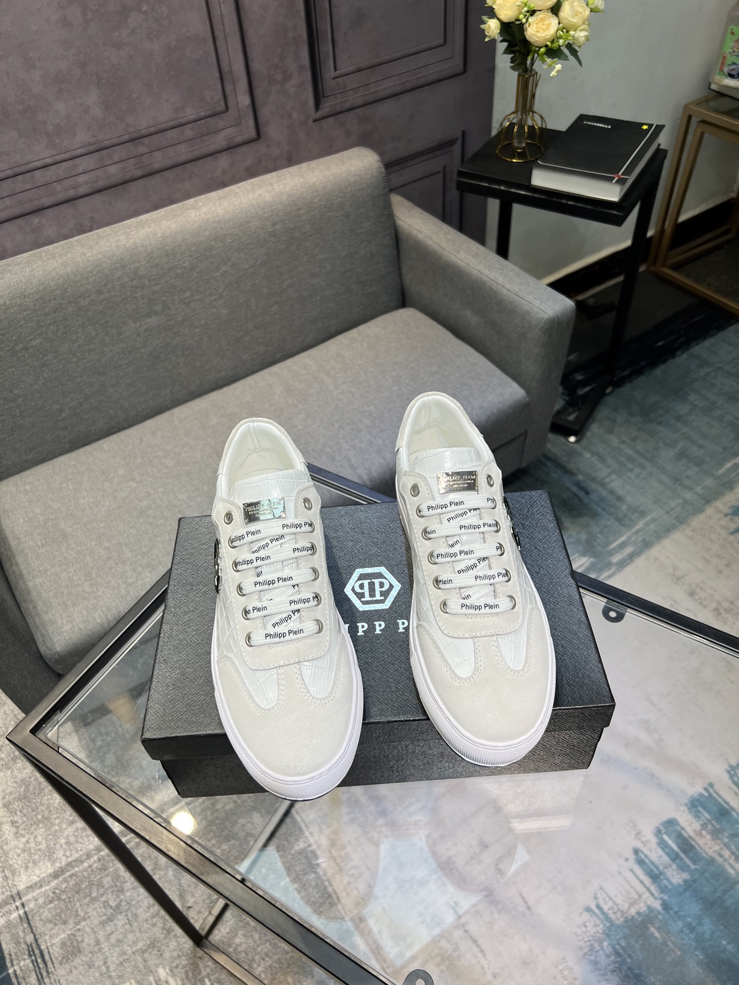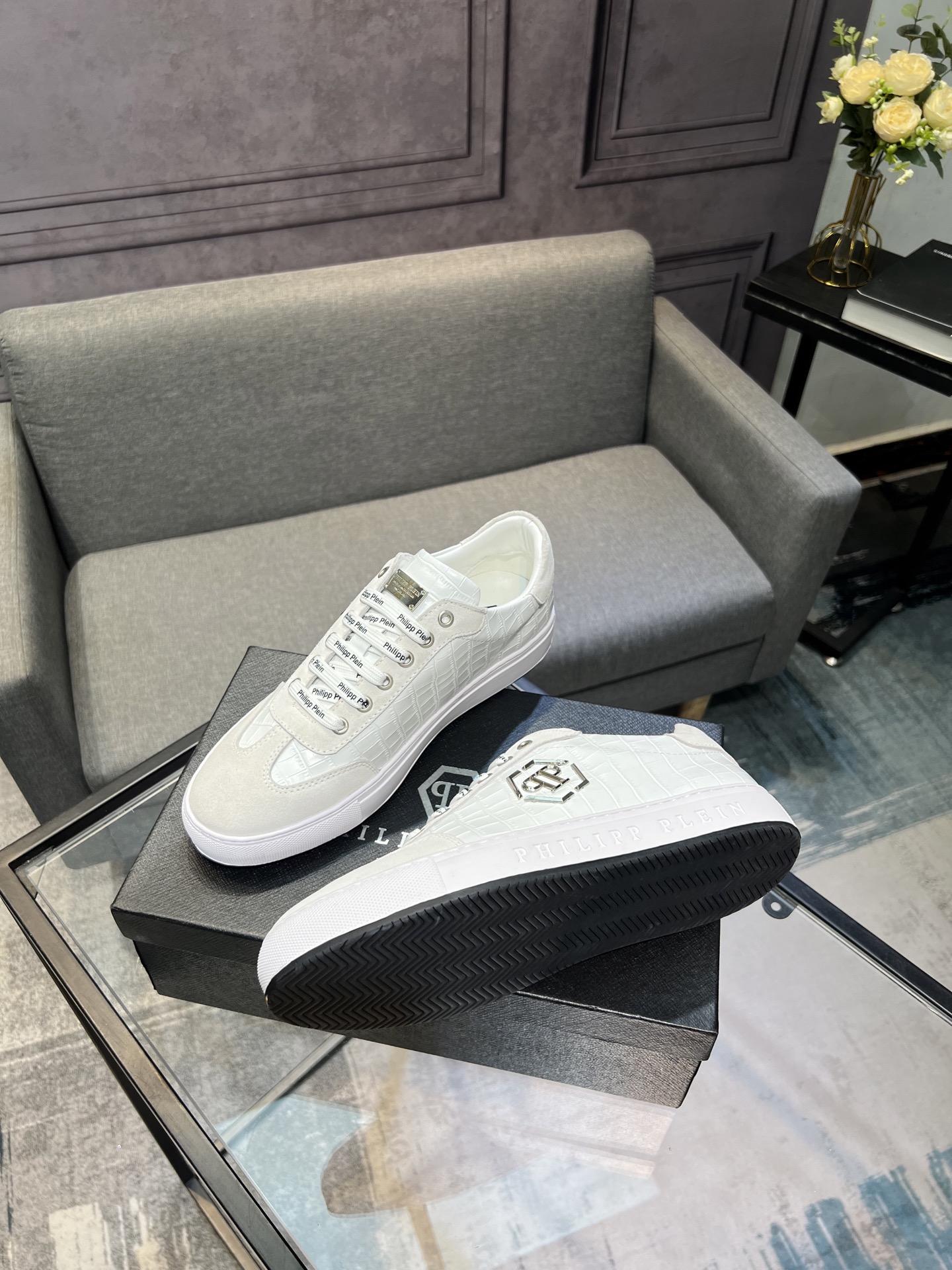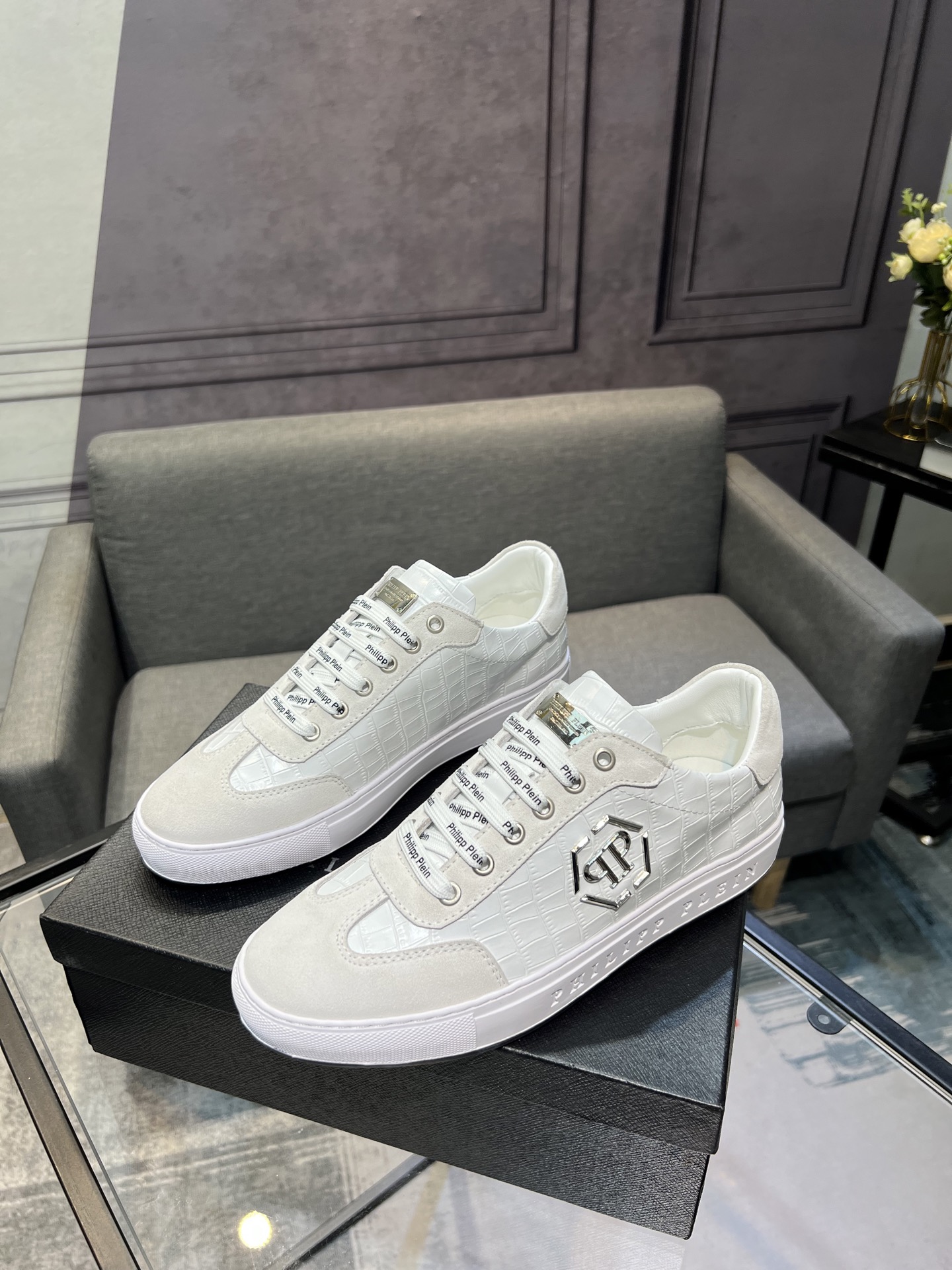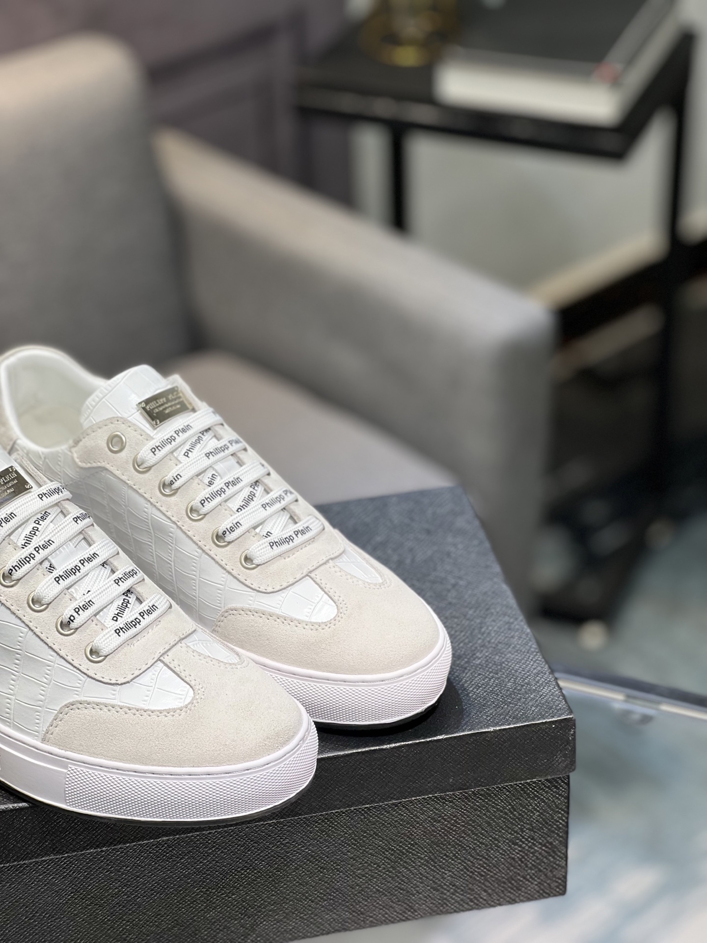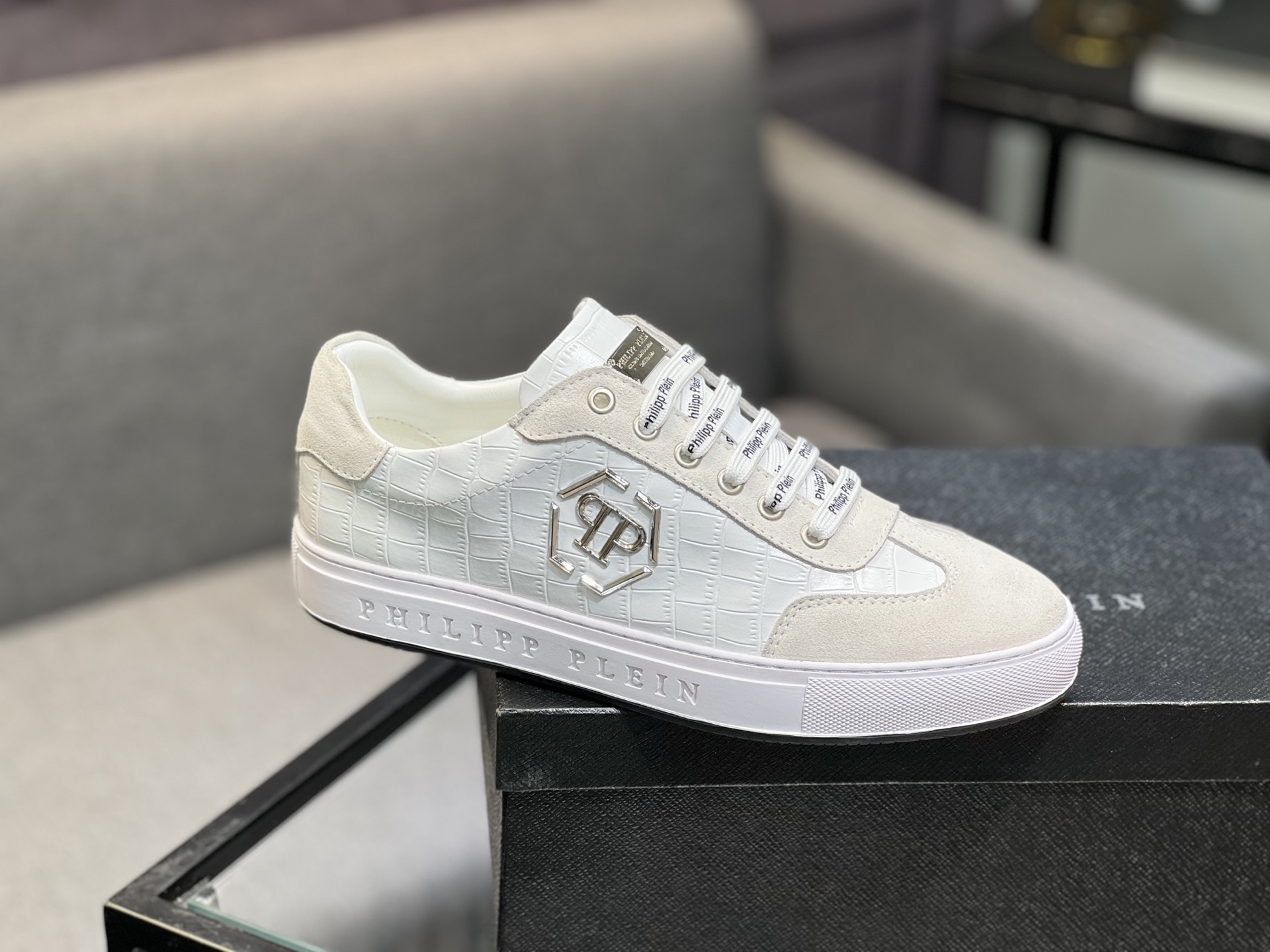 Philipp Plein Men's White Leather Sneakers With Metal Logo Hardware
