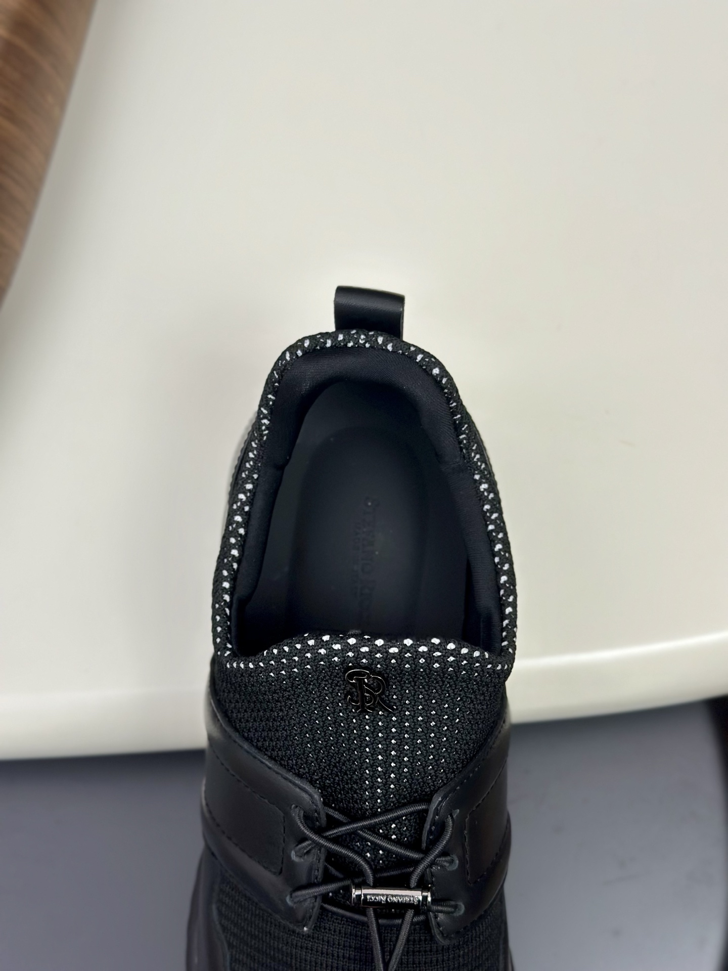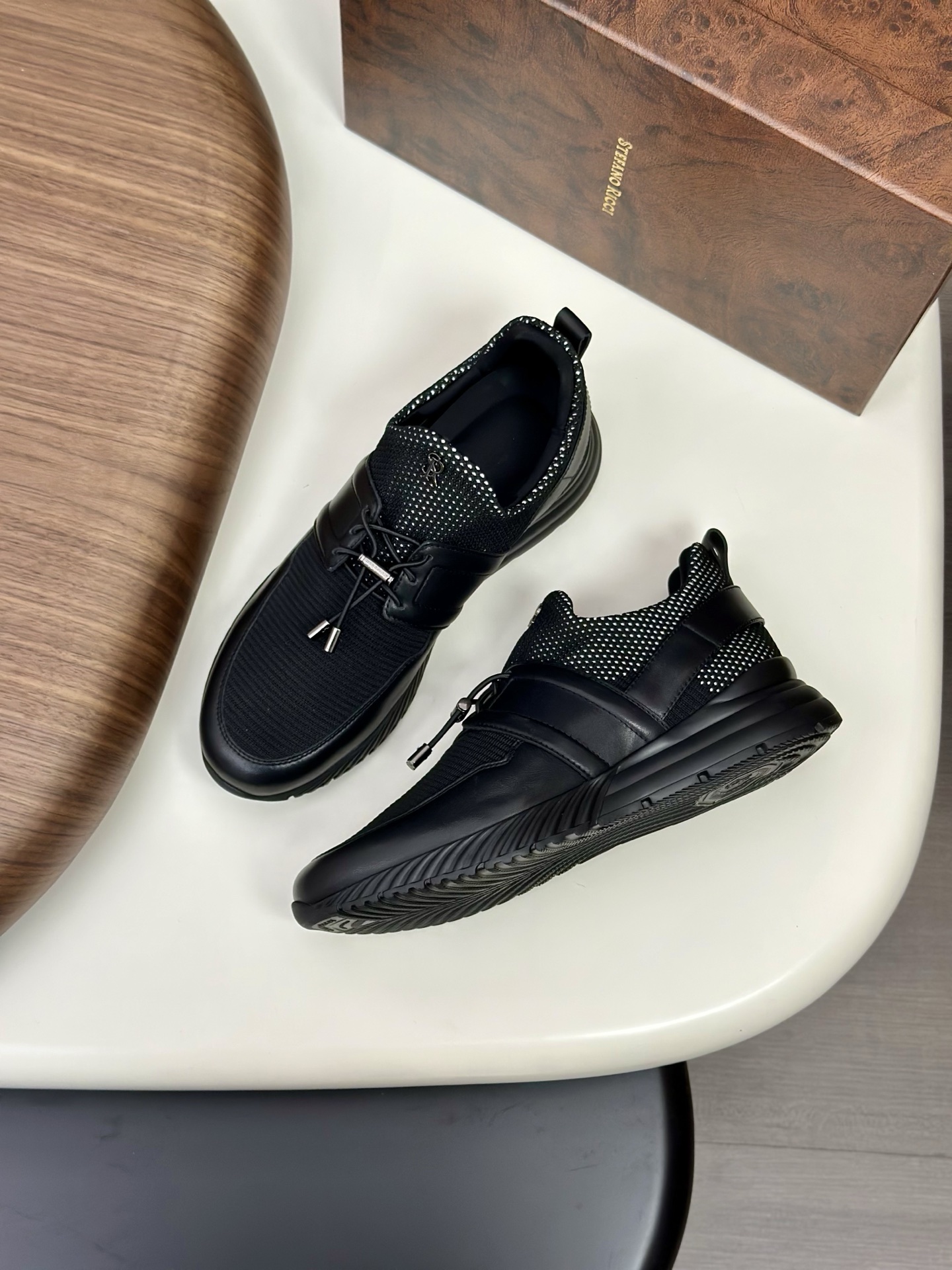 Stefano Ricci Men's Black Nappa Leather & Knit Casual Sneakers - Size 39-44