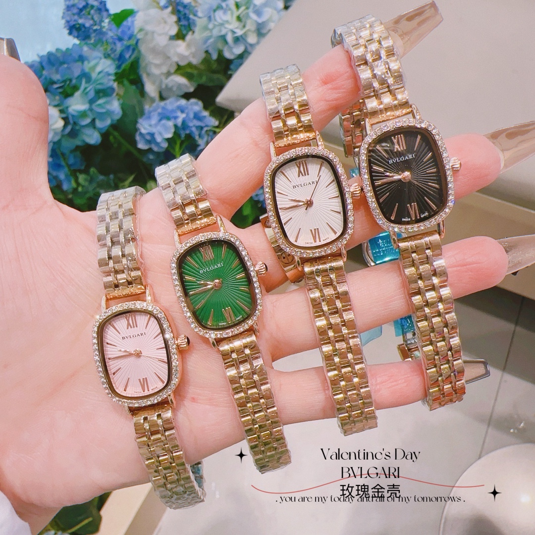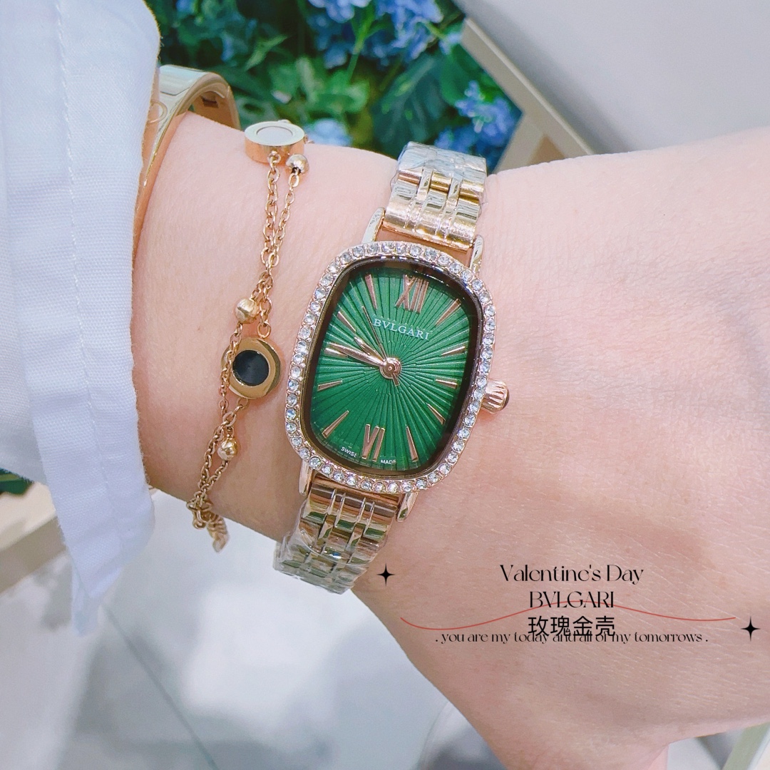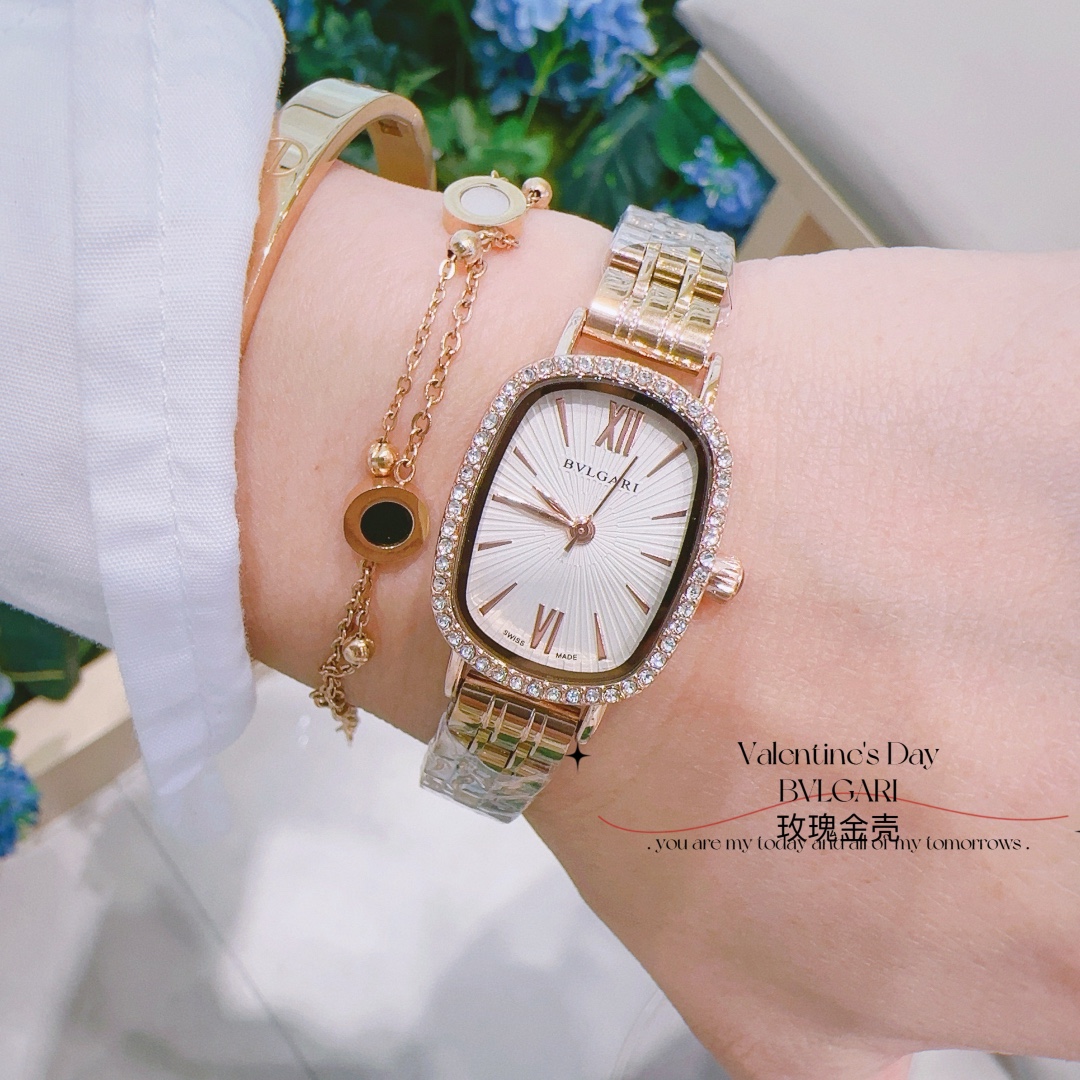 Tags: Bvlgari Women's Watch, Designer Women's Watch, Elegant Wristwatch, Gold Tone Alloy Watch, Quartz Movement Watch